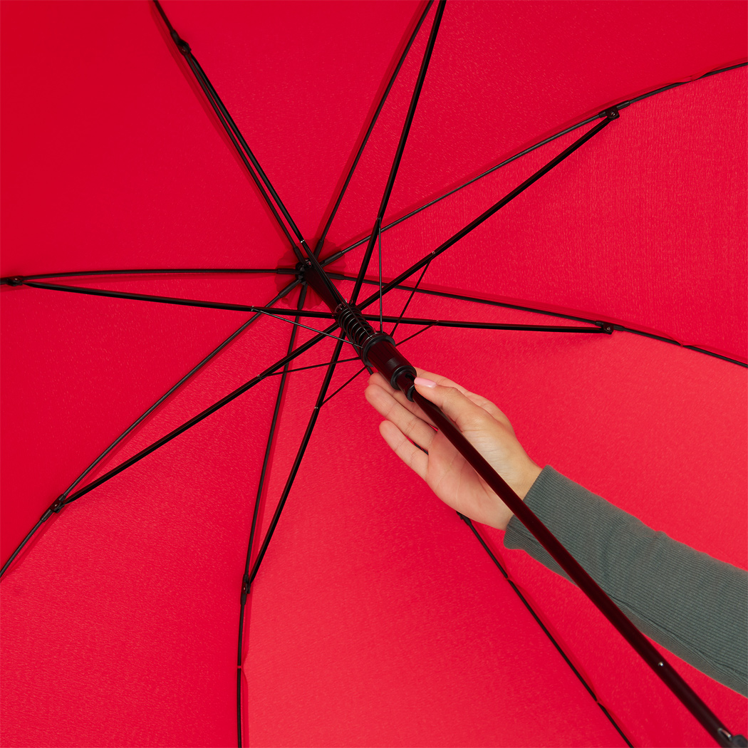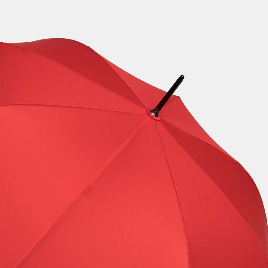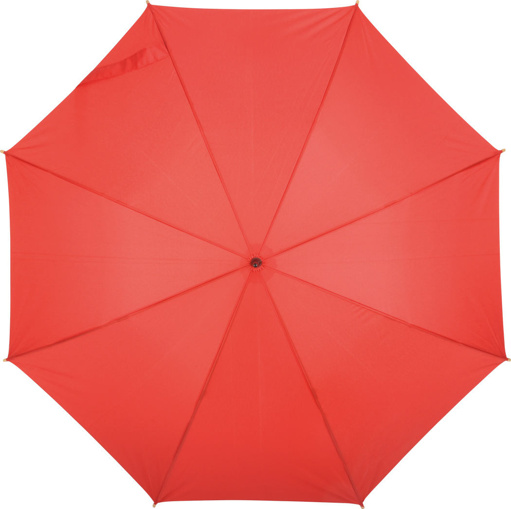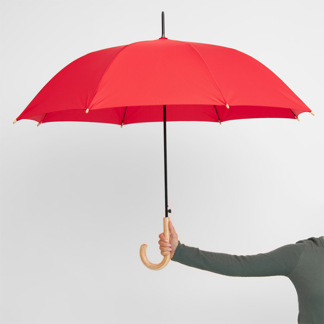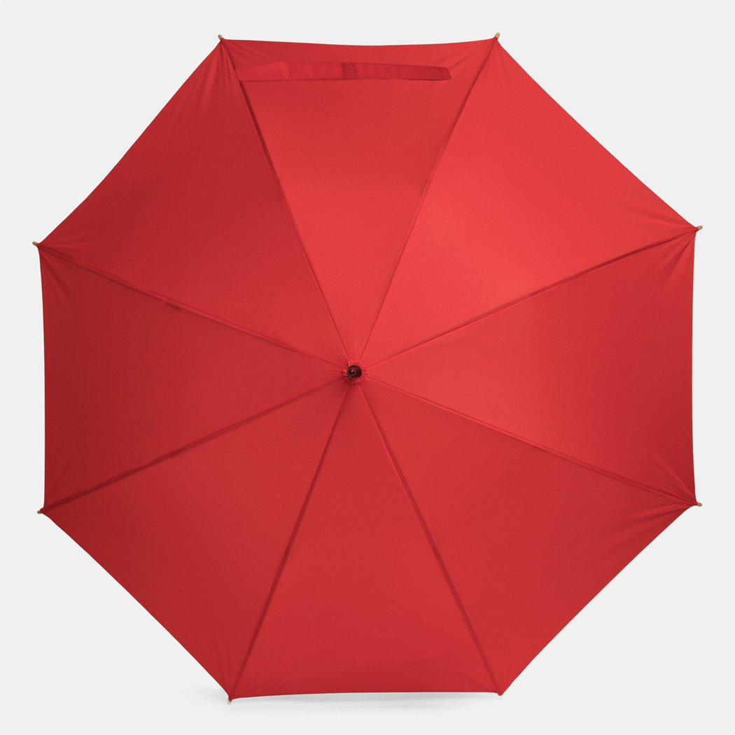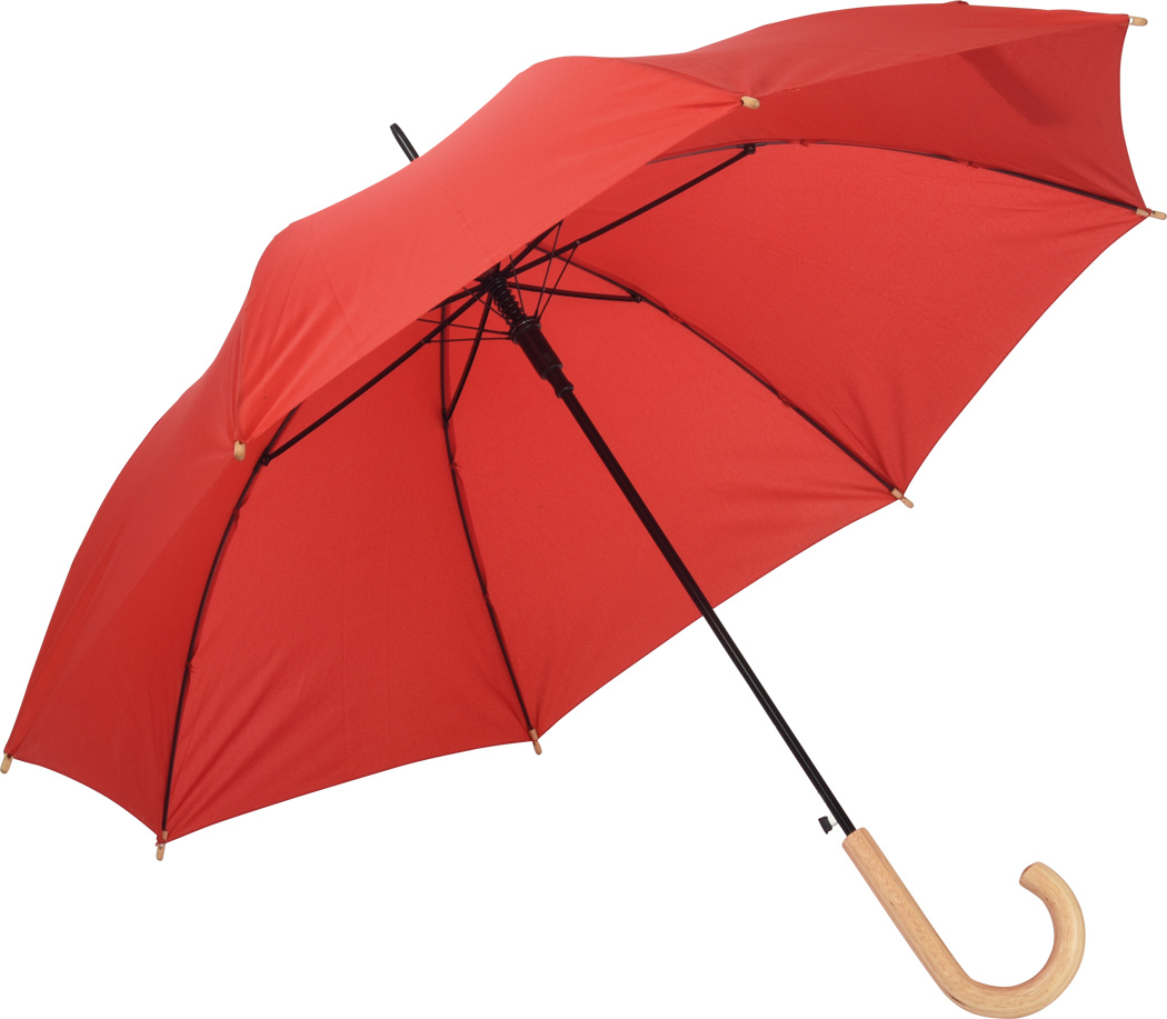 Automatik-Stockschirm LIPSI: Metallstock, Fiberglasspeichen, Holztips und -Rundhakengriff, Polyester-Pongee-Bespannung aus recycelten Kunststoffen / RPET, Schließband mit Klettverschluss