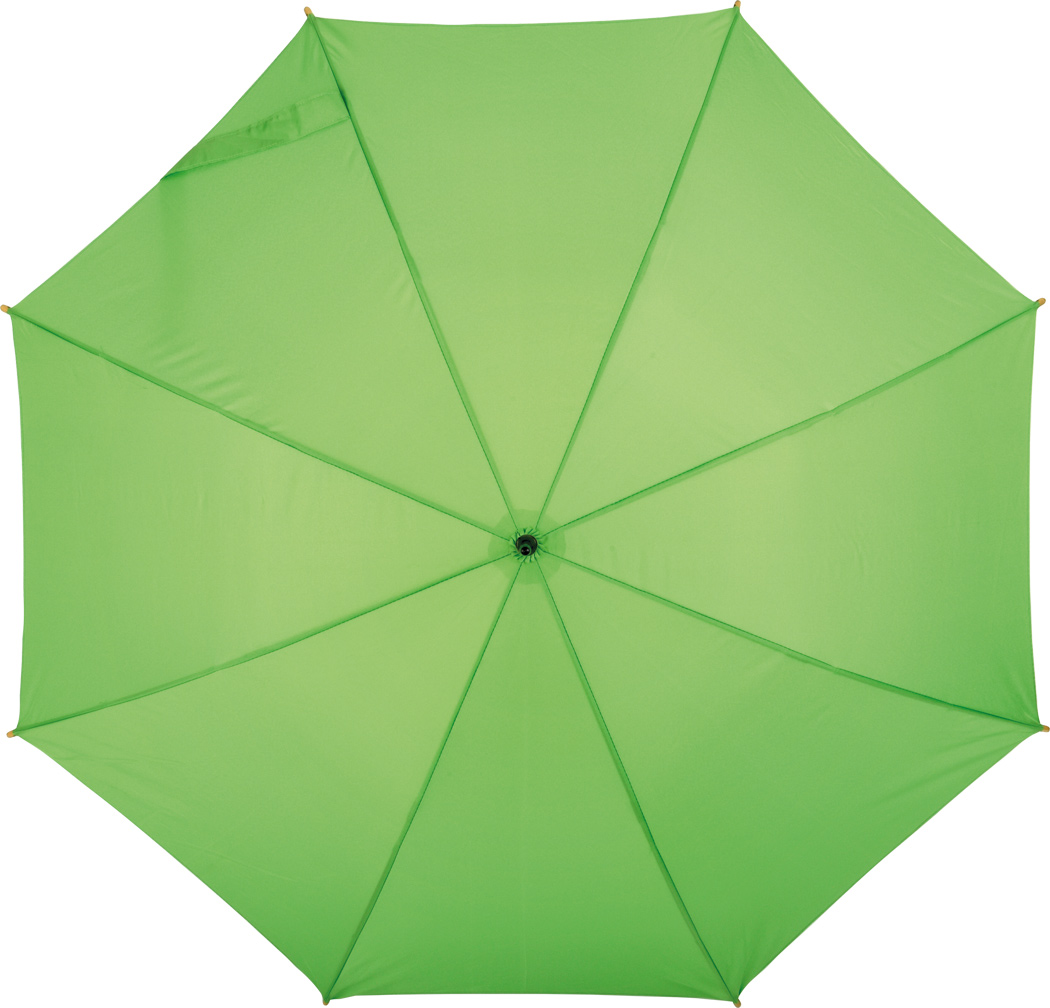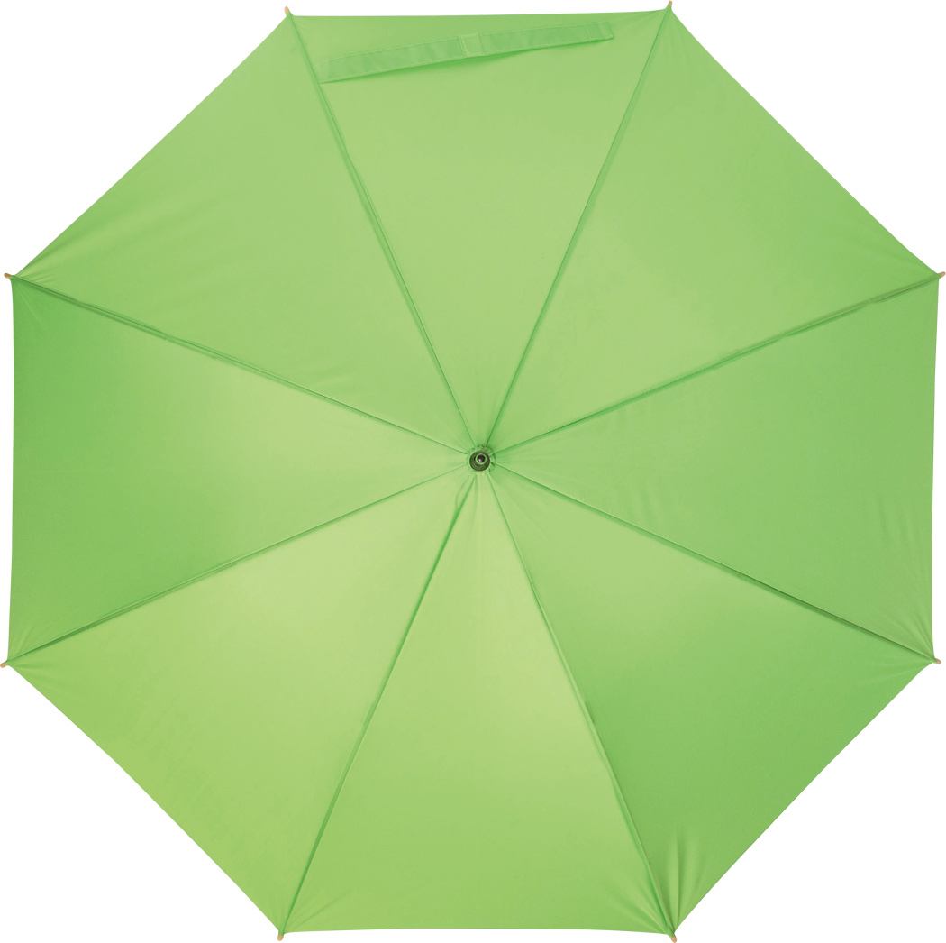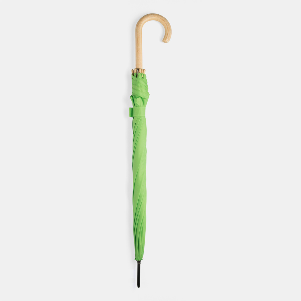 Automatik-Stockschirm LIPSI: Metallstock, Fiberglasspeichen, Holztips und -Rundhakengriff, Polyester-Pongee-Bespannung aus recycelten Kunststoffen / RPET, Schließband mit Klettverschluss