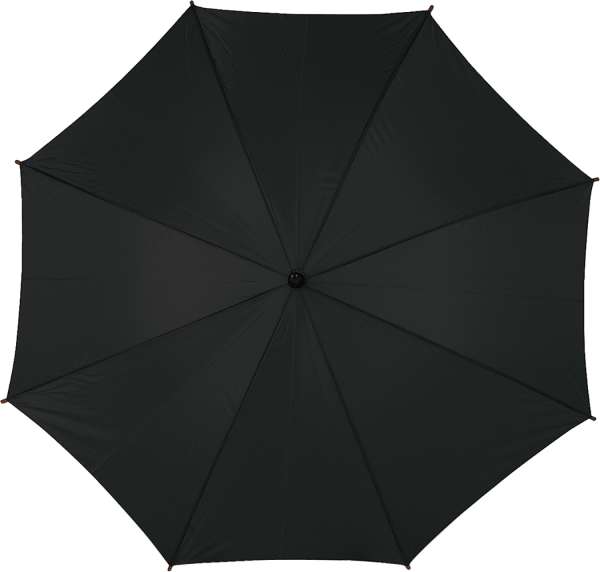 Automatik-Stockschirm aus Polyester (190T), mit Holzkrücke, Tips und Schaft aus Holz und Metallgestänge.