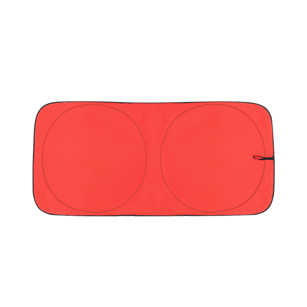 Faltbarer Sonnenschirm mit praktischem, leichtem Design, hergestellt aus Polyester, ideal für Autos und Kleintransporter mit Maßen von 150 x 70 cm. Die Außenseite zeigt eine einfarbige Farbe, während die Innenseite in glänzendem Silber ist, was wirksamen Schutz gegen Sonne und Wärme bietet. Enthält ein elastisches Verschlussband zur erleichterten Lagerung. Inklusive passendem Einzelhülle.