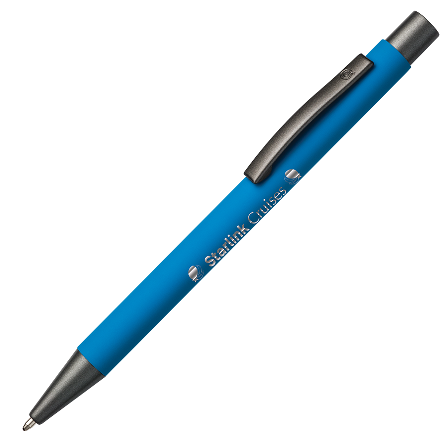 BARBADOS soft touch Kugelschreiber mit Spiegel Gravur, blauschreibend