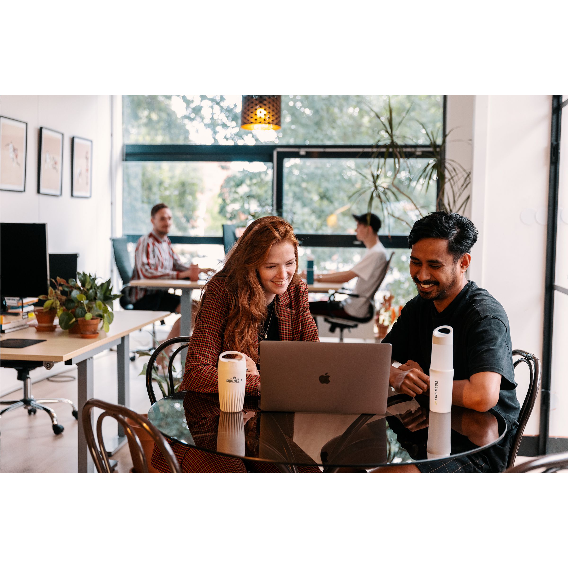 Wasserflasche der Marke BE O Lifestyle. Die Flasche besteht zu 94% aus BIO-HDPE, das aus Zuckerrohr gewonnen wird. 100% recycelbar. Das besonders auffällige Design macht sie zu einem absoluten Blickfang. Die Flasche hat einen praktischen, auslaufsicheren Schraubverschluss und ist leicht zu transportieren. Die Flasche setzt sich aus mehreren Teilen zusammen. Die einzelnen Teile können separat als Trinkbecher verwendet werden, sodass Sie Ihr Getränk mühelos teilen können. Das macht auch die Reinigung besonders einfach. Geeignet für alle Getränke ohne Kohlensäure und alkoholische Getränke bis zu 13%. Seien Sie vorsichtig, wenn die Tasse mit heißer Flüssigkeit gefüllt ist. Tragen Sie den Becher aufrecht und schütteln Sie ihn nicht. Geeignet für Lebensmittel und geruchs- und geschmacksneutral. Die verwendeten Materialien entsprechen den Anforderungen der Spülmaschinengeeignet bis 65°C. Um den Aufdruck zu erhalten, wird Waschen von Hand empfohlen. Fassungsvermögen 500 ml. EU-zertifiziert. Niederländisches Design. Made in Europe.