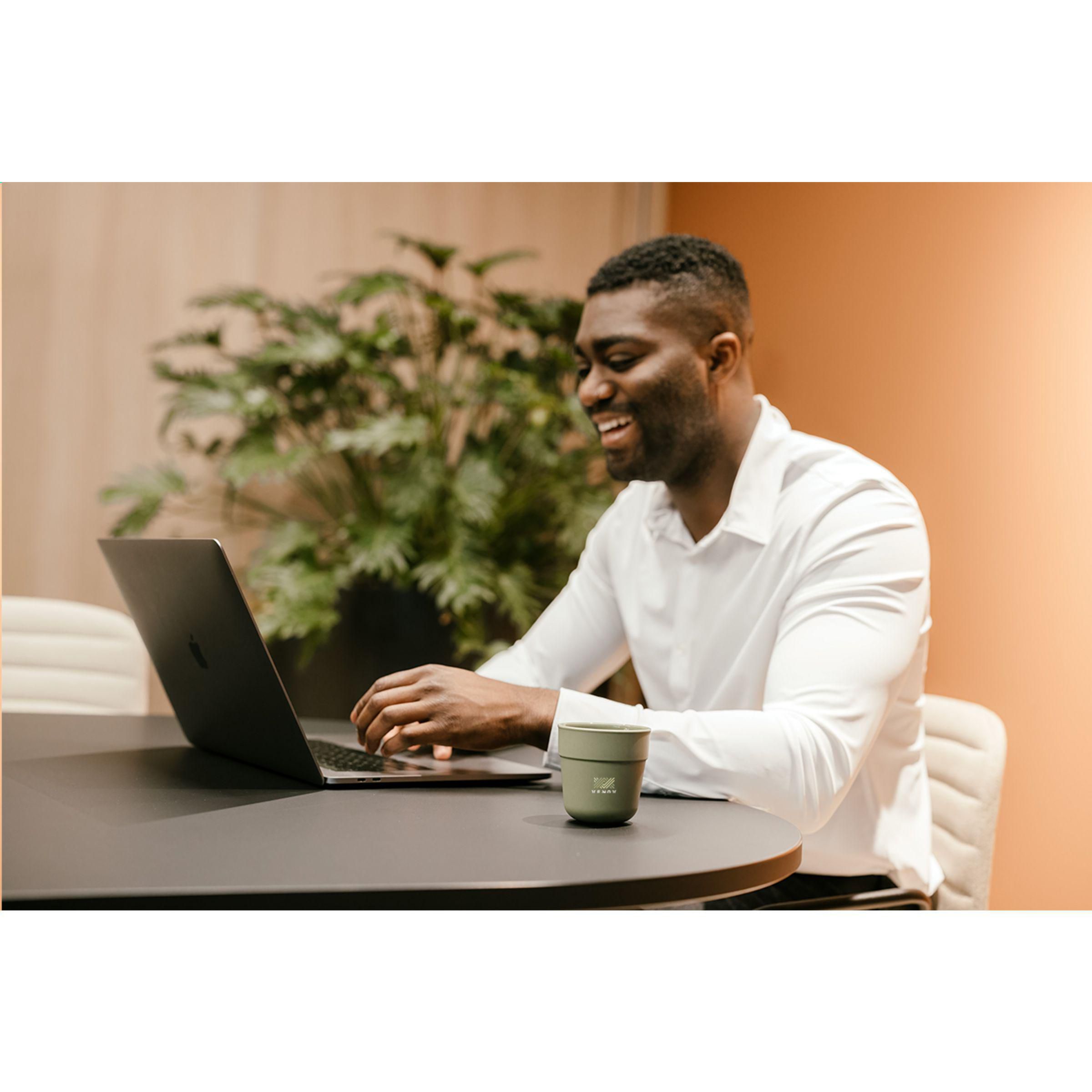 iederverwendbarer Kaffeebecher der Marke BE O Lifestyle. Ein stapelbarer Becher im praktischen Format. Hergestellt aus pflanzlichen Fetten und Ölen, die aus Abfällen von Gastronomiebetrieben in den Niederlanden gewonnen werden. 100% recycelbar. Geruchs- und geschmacksneutral. Spülmaschinengeeignet. Um den Aufdruck zu erhalten, wird Waschen von Hand empfohlen. Der elegante Becher ist der ideale Ersatz des Einwegbechers an der Kaffeemaschine. EU-zertifiziert. Fassungsvermögen: 220 ml. Niederländisches Design. Made in Europe.