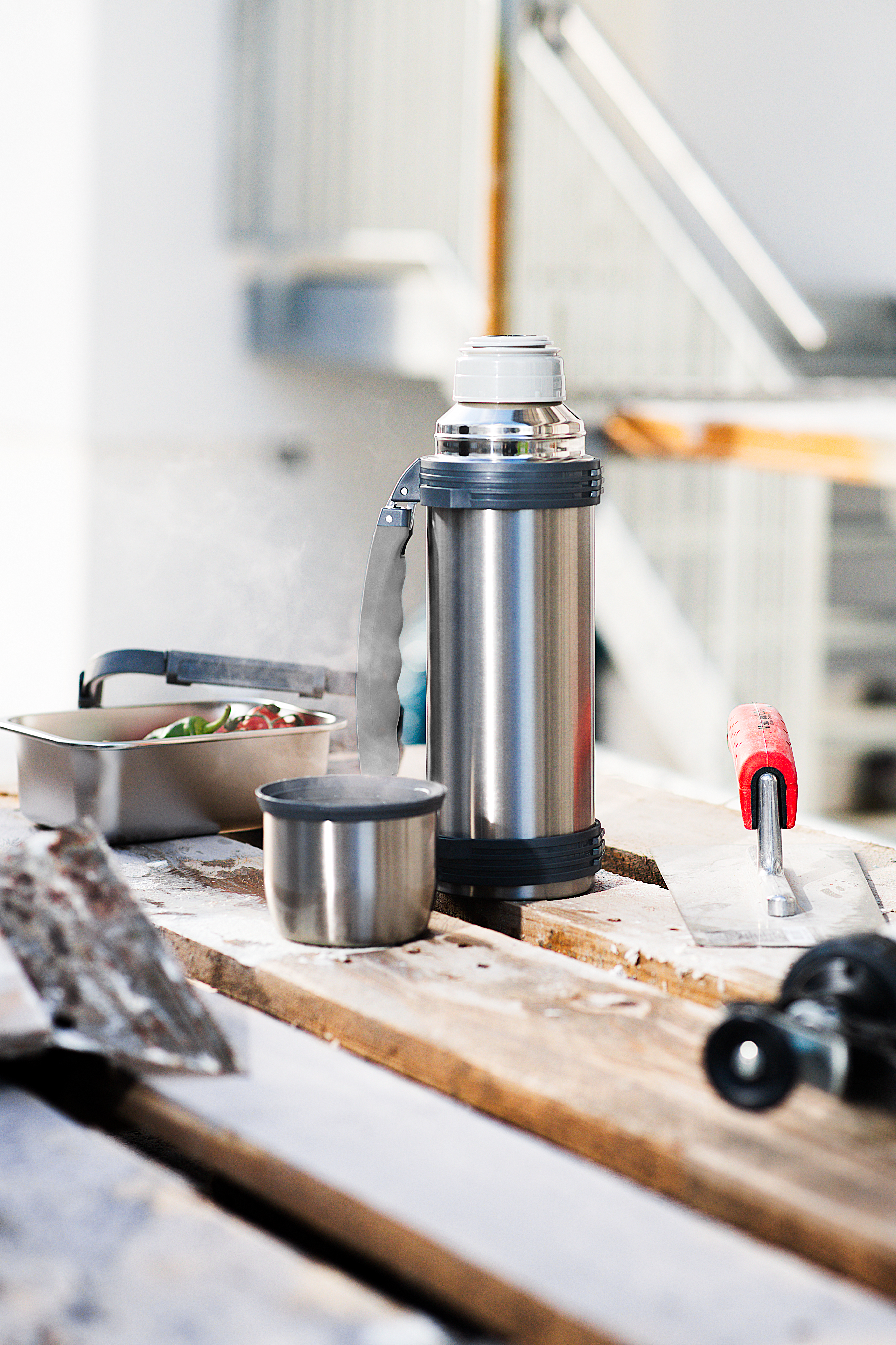 Ein starker Typ! Vakuumflasche mit 1200 ml Inhalt Für Baumeisterinnen und Baumeister und alle die es werden wollen. Mit Schraubdeckel als Trinkbecher und stabilem Klappgriff. Material: Edelstahl und ABS, silber Plastikfreie Einzelverpackung Maße: 313 x Ø 100 mm Gewicht ohne Verpackung: 816 g Werbeanbringung: Auf dem Körper 20 x 50 mm (D2, L2) Auf dem Körper 60 x 70 mm (3DL3) Auf dem Deckel Ø 50mm (D2, L2;) Dieses Produkt unterstützt aktiv den Ausgleich der entstehenden CO2-Emissionen durch zertifizierte Klimaschutzprojekte.