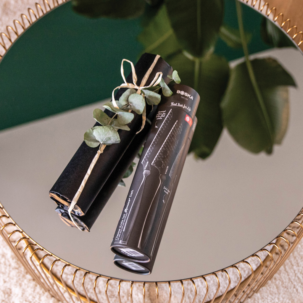 Von weichem Brie bis zu hartem Parmesan – das Käsemesserset Monaco + Black von BOSKA – einem zertifizierten B-Corporation-Unternehmen – bietet für jede Käsesorte die perfekte Schneidelösung. Diese einzigartigen Edelstahlmesser mit Antihaftbeschichtung und einer Hülle aus echtem Leder sind ein ideales und stilvolles Geschenk für echte Käseliebhaber und Kochbegeisterte. Dieses Set ist kühlschrankgeeignet, darf nur von Hand gewaschen werden und hat eine 10-jährige Garantie.