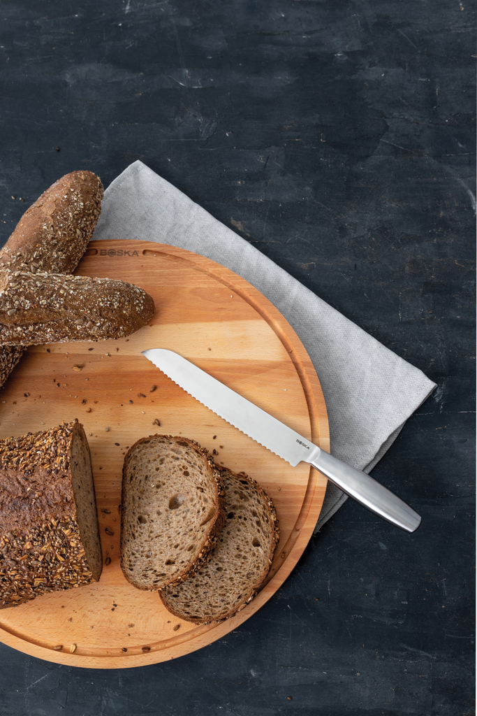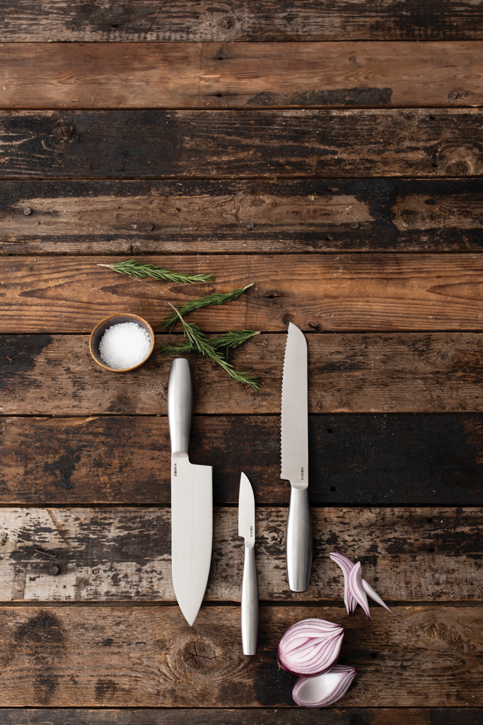 Mit den Küchenmessern Kitchen Knives Copenhagen der Marke BOSKA – einem von B Corporation zertifizierten Unternehmen – schneiden Sie jede Art von Lebensmitteln mühelos. Ein Set aus drei scharfen und unverzichtbaren Messern mit einzigartigem Design, die vollständig aus Edelstahl gefertigt sind. Leicht, spülmaschinenfest und mit einem ergonomischen Griff, der auf verschiedene Schneidetechniken und Lebensmittel zugeschnitten ist. Für ein Leben lang!