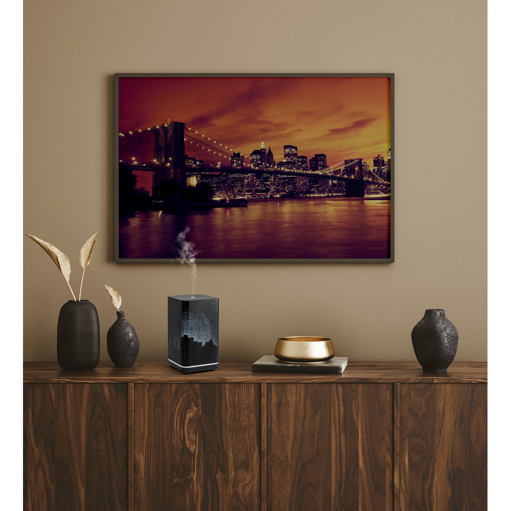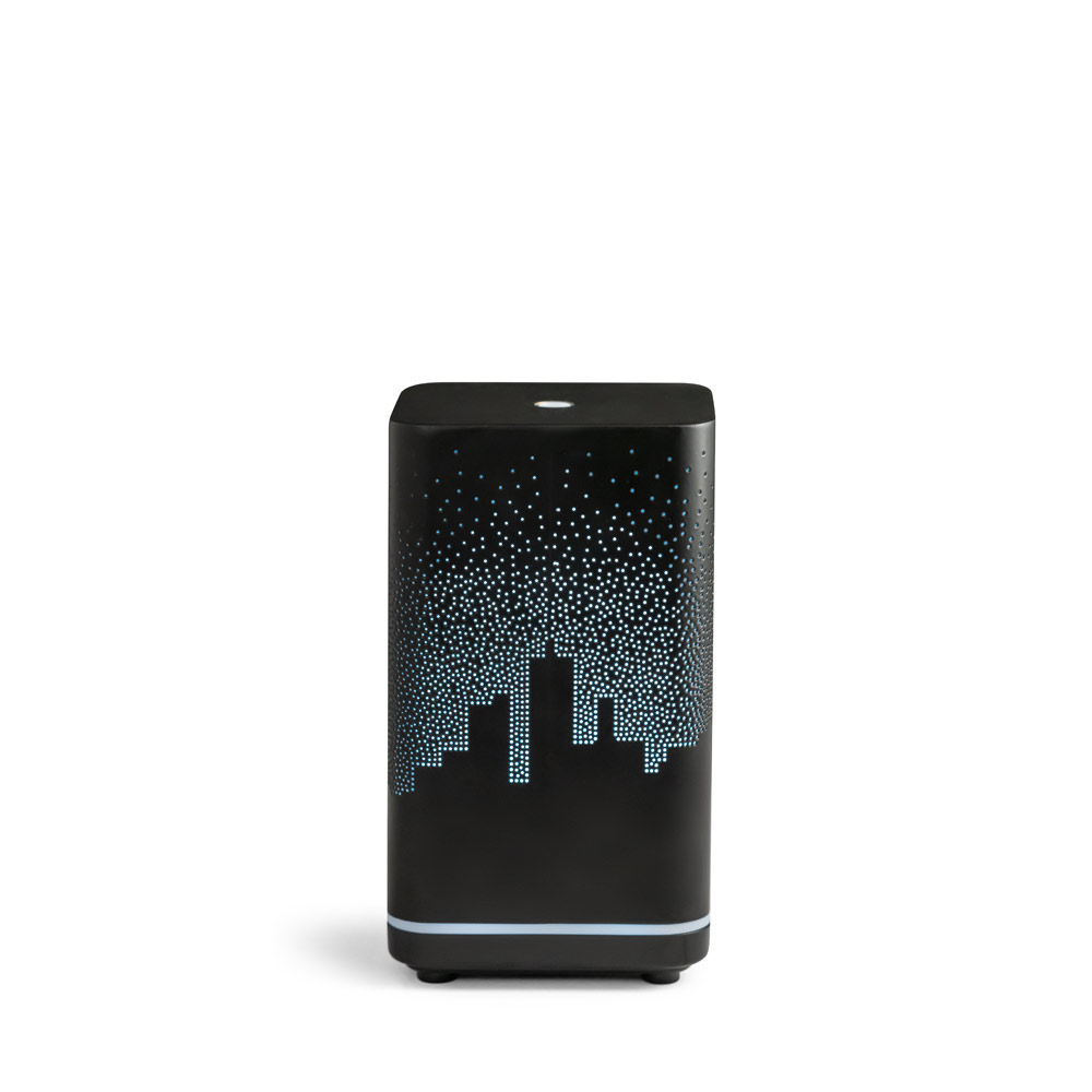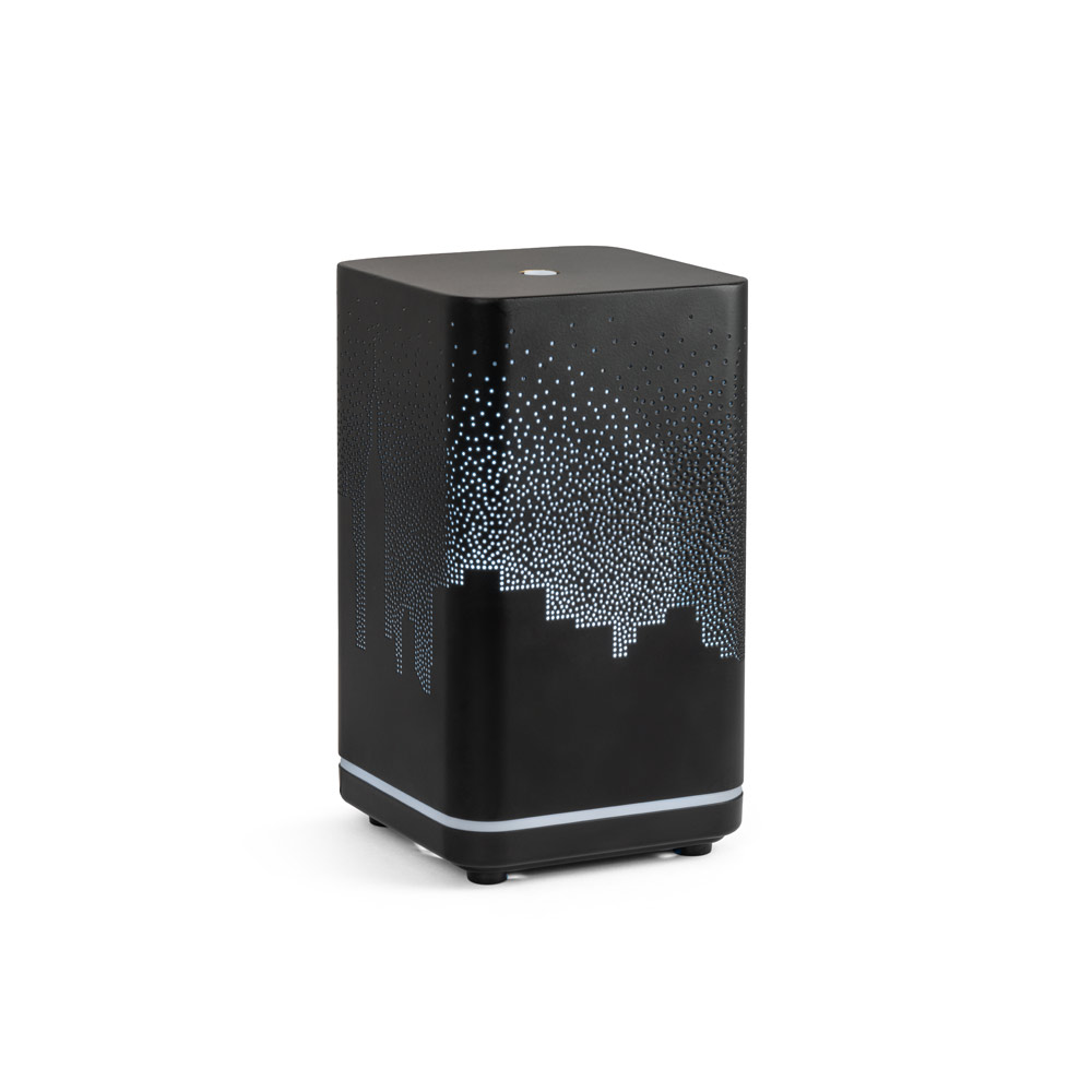 Aromadiffusor mit Innenbeleuchtung aus PP, ABS und Metall. Er wurde entwickelt, um eine angenehme, duftende Atmosphäre zu schaffen (Duftstoff nicht im Lieferumfang enthalten), verfügt über einen 120-mL-Behälter und kann bis zu 6 Stunden lang sprühen. Wird in einer schwarzen Geschenkbox mit USB-Ladekabel geliefert. 98 x 175 x 98 mm