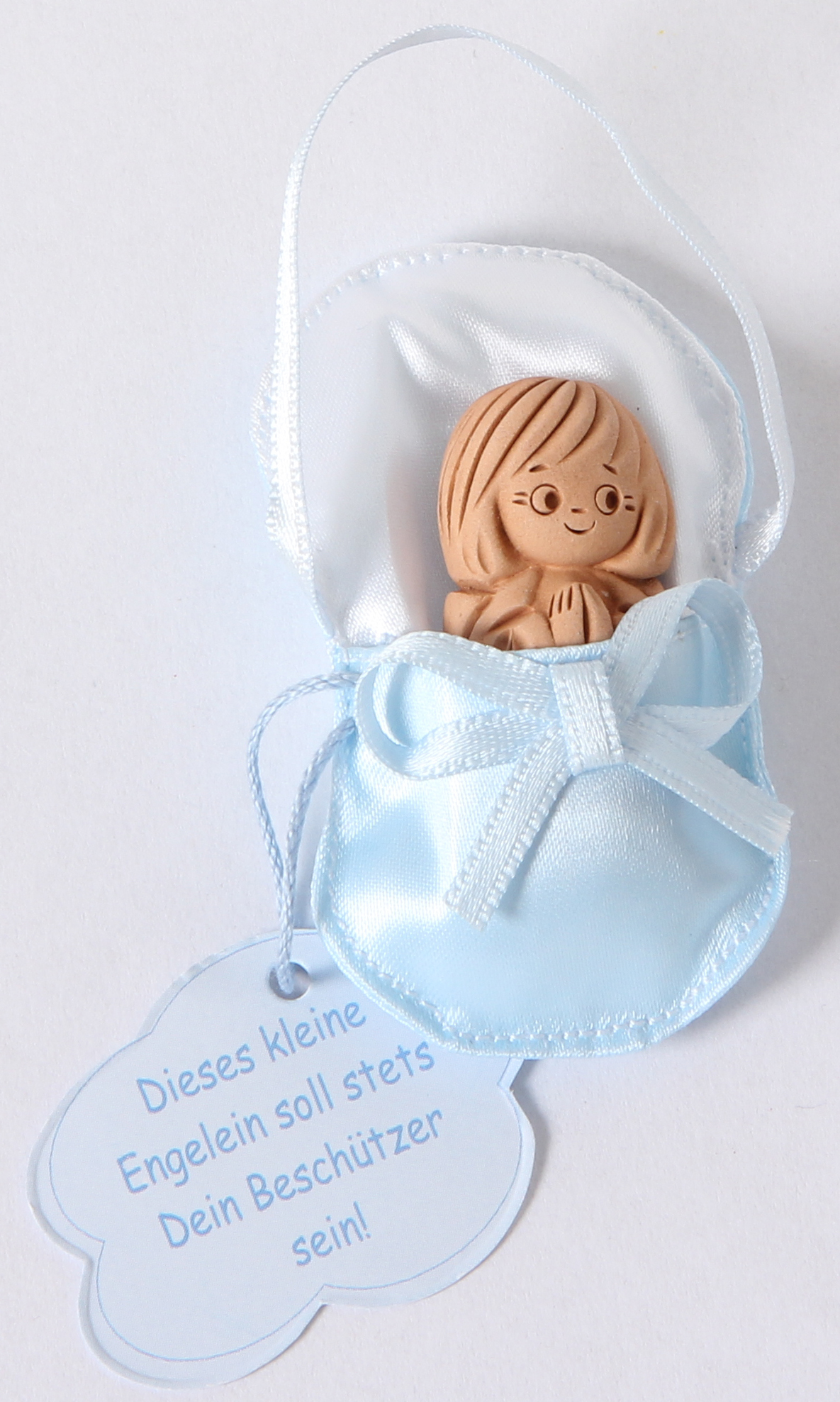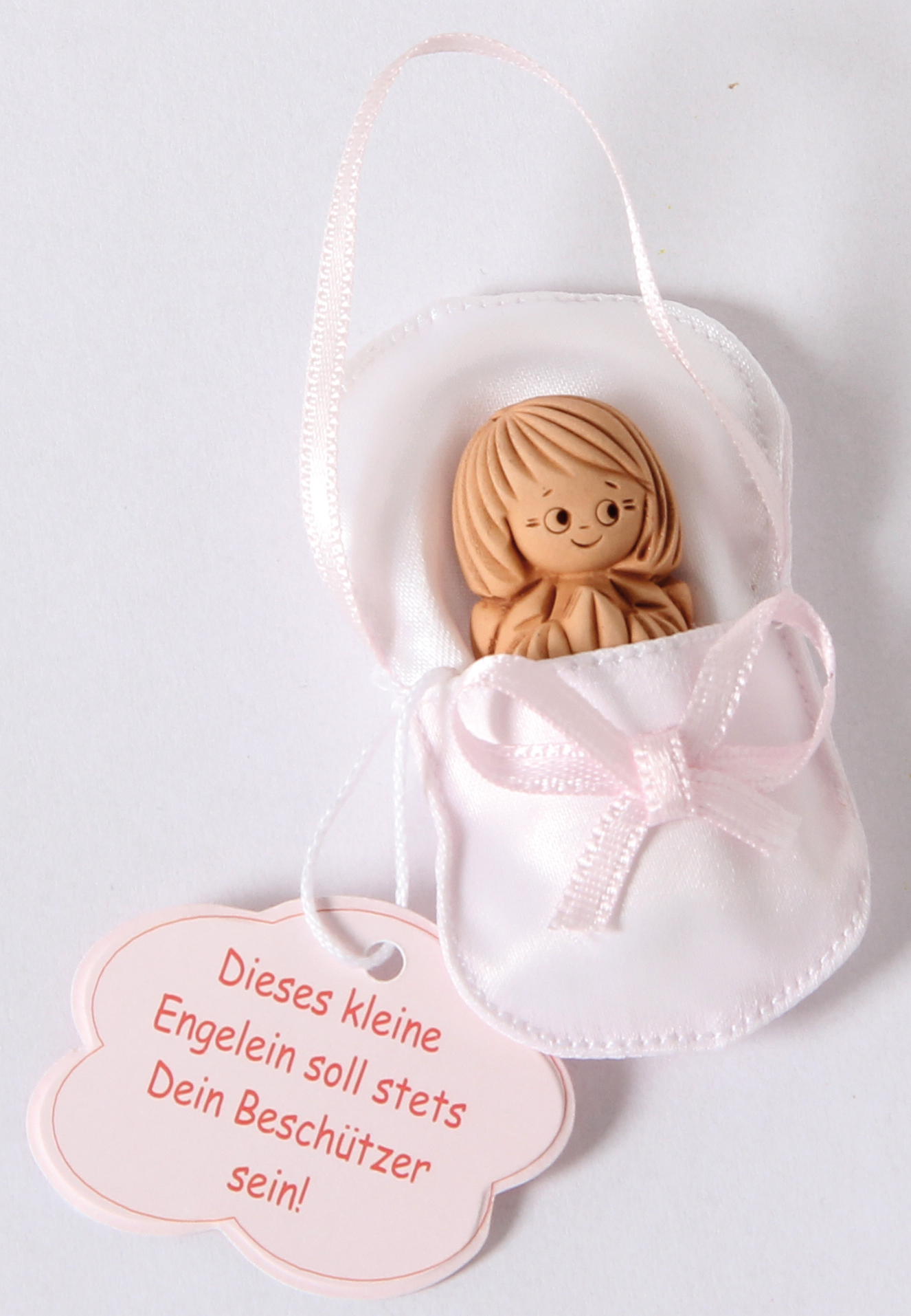 Handgefertiger Keramikengel im Babyschlafsack. In rosa und blau sortiert.