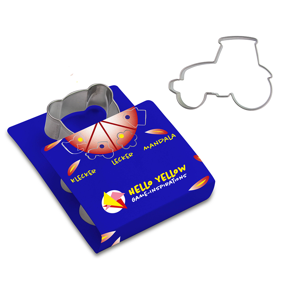 Nicht nur in der Weihnachtszeit sind Kinder begeisterte Bäcker. Daher richten sich die entzückenden Backförmchen an unseren Nachwuchs. Die kindgerechten Symbole Drache, Bär, Delfin, Elefant und Traktor werden als Edelstahl-Backförmchen – spülmaschinenfest – in der Papierverpackung Single-Pack geliefert. Die Verpackung ist mit einer individuellen Werbebotschaft und falls gewünscht, mit einem Backrezept gestaltbar.