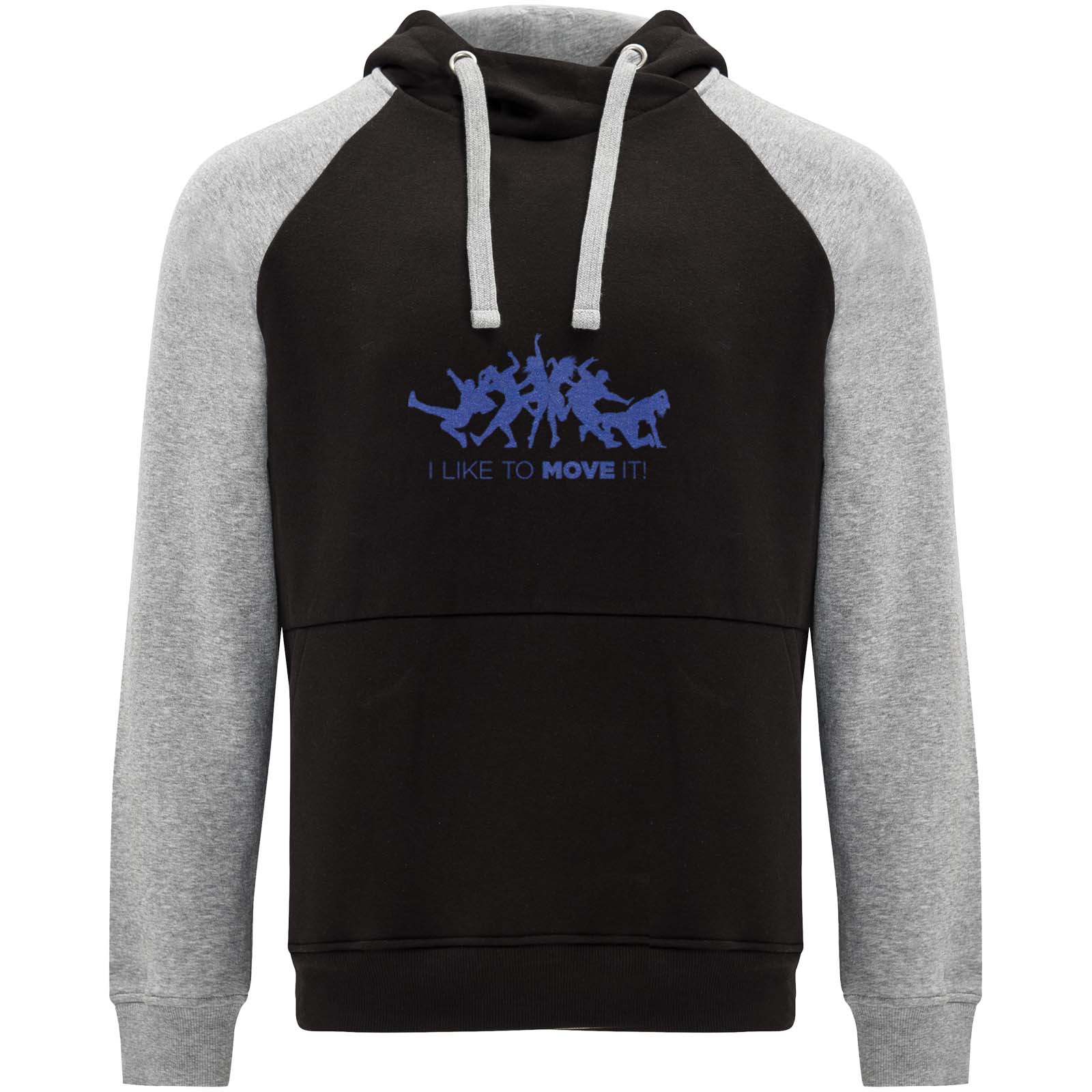 Zweifarbiger Unisex Kapuzenpulli. Kapuze mit gekreuztem Kragen und Metallösen. Innenkapuze, Kordelzug und Raglanärmel in Kontrastfarbe. Kängurutasche. Bündchen und Saum aus elastischem 1×1-Rippstrick. Abnehmbares Etikett.