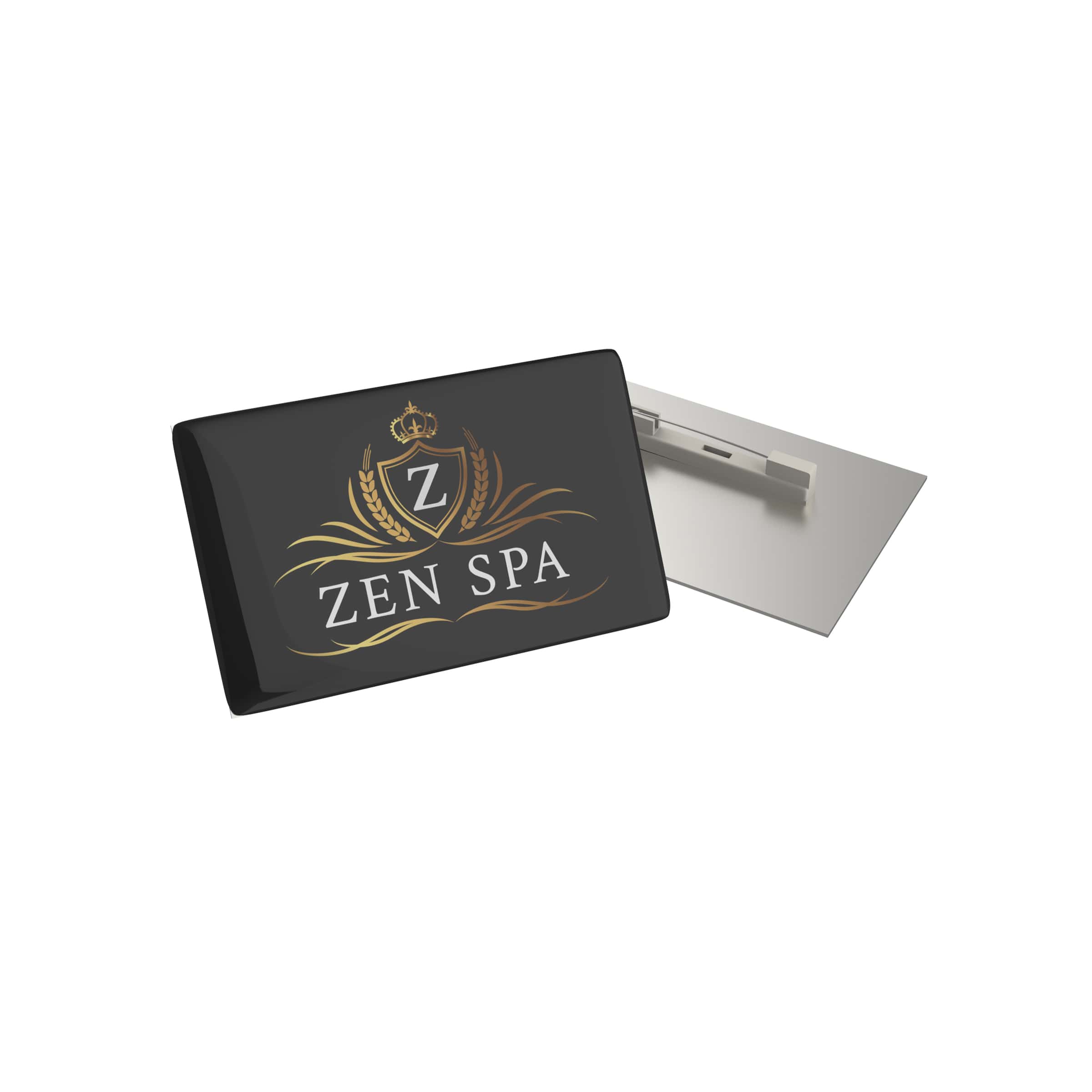 Zeigen Sie Ihre Marke auf dem Badge Megan. Es besteht aus Metall und ist in verschiedenen Standardformen in -größen erhältlich.