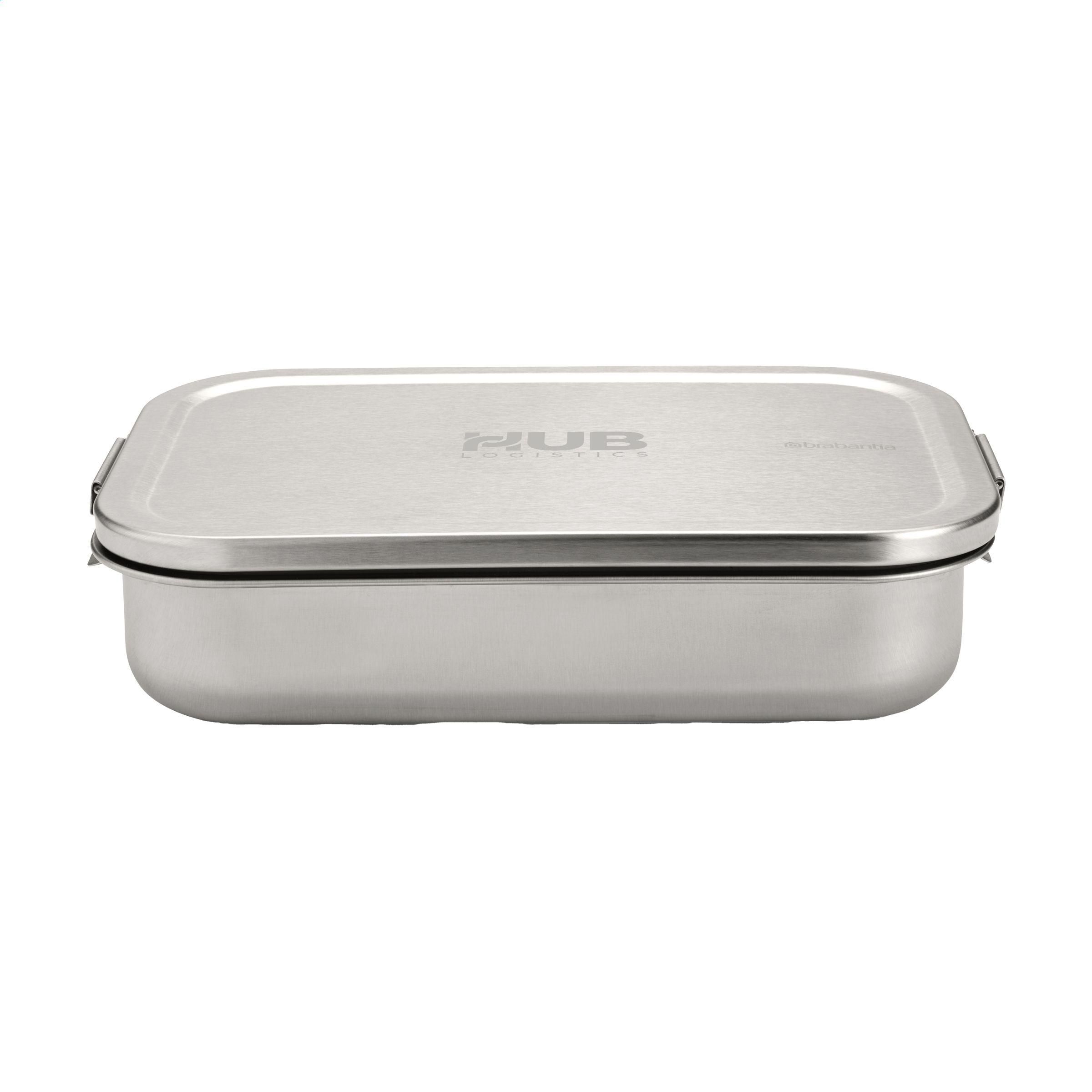 Badgehalter mit metallenem Befestigungsclip, aufrollbarem Nylonband und Badgeclip mit Druckknopf.