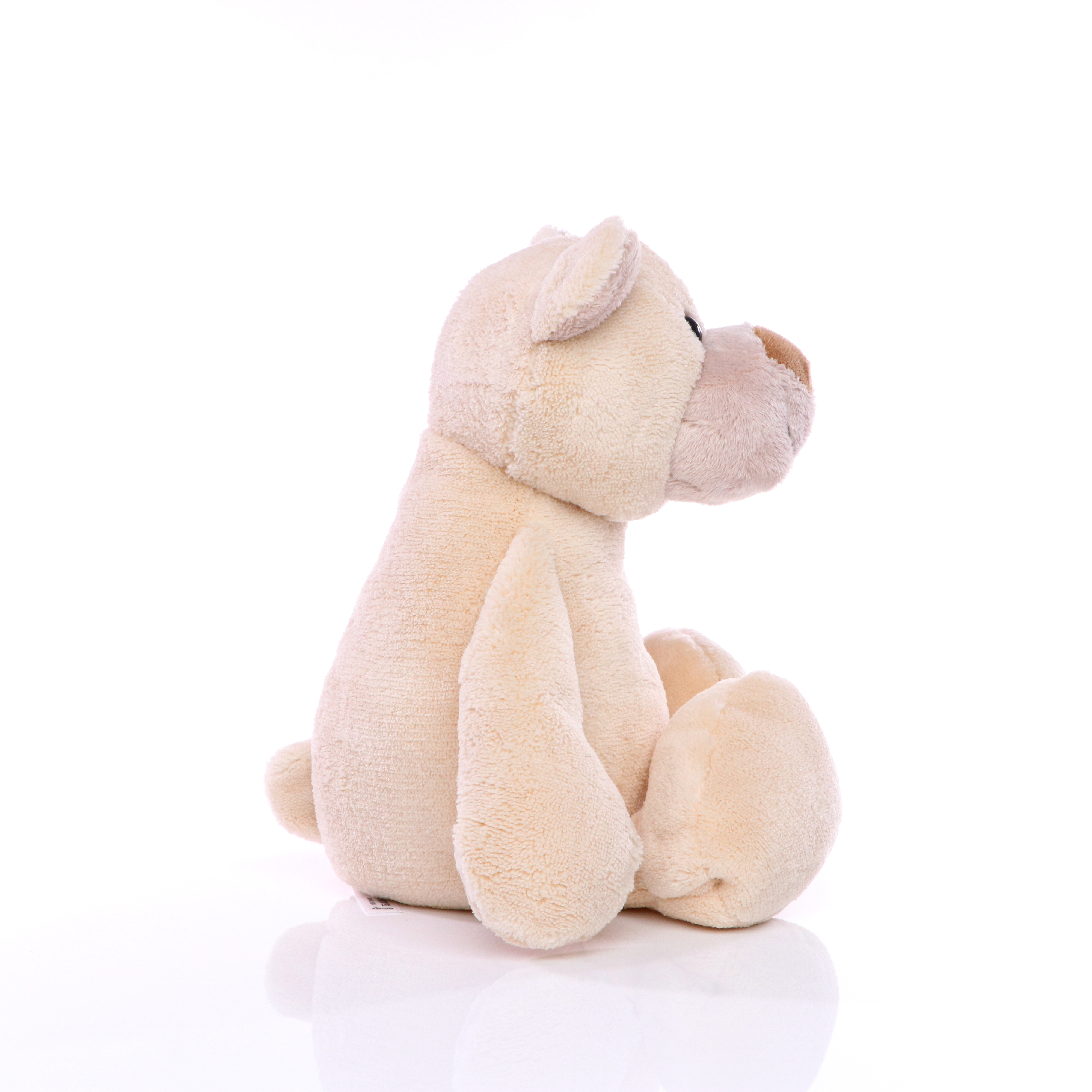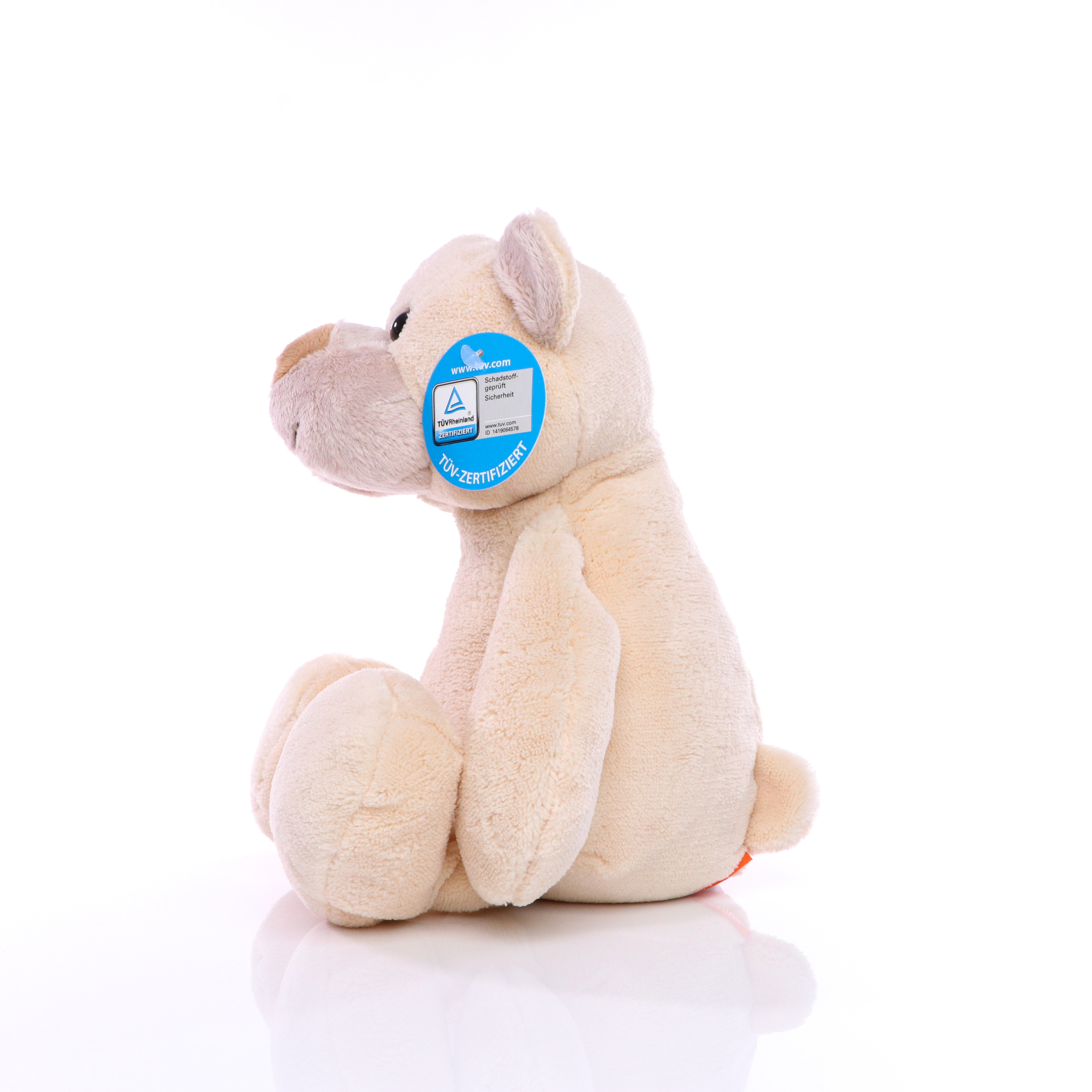 Aufmerksam schauen die Kulleraugen von Plüsch Bär Josef, als würde er nur darauf warten, dass man ihn auf den Arm nimmt und mal richtig mit ihm kuschelt. Die Plüschnase und das breite Lächeln geben ihm ein weiches, verschmustes Aussehen. Dank seines beschwerten Popos, kann er überall sitzen und weil seine langen, weichen Beine und die großen Füße auch so gut zum Baumeln geeignet sind, kann er ebenso lässig auf (Tisch-, Schrank-,...) Kanten hocken.