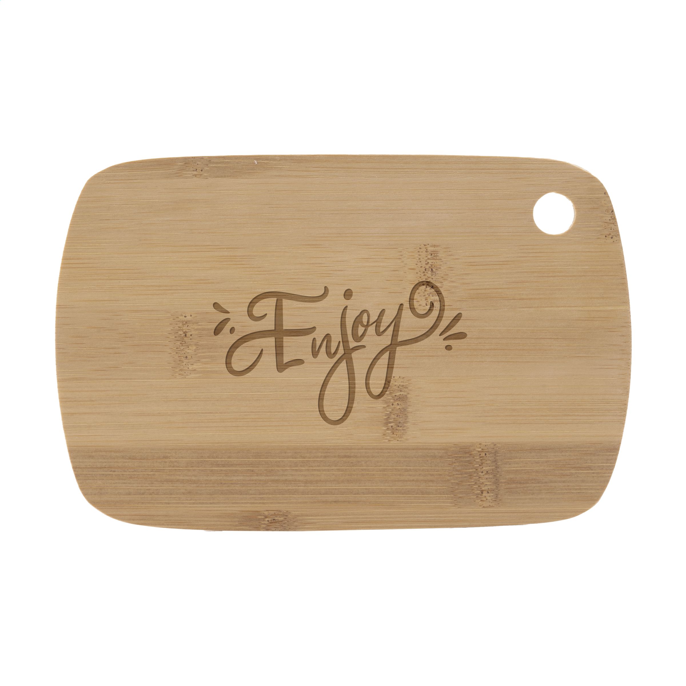 Bambus-Käsebrett im kleinen, handlichen Format. Mit Öffnung zum Aufhängen. Inklusive Käsemesser. Bambus ist ein natürliches Material. Deshalb kann die Farbe je nach Produkt variieren. Pro Set in einer Verpackung.
