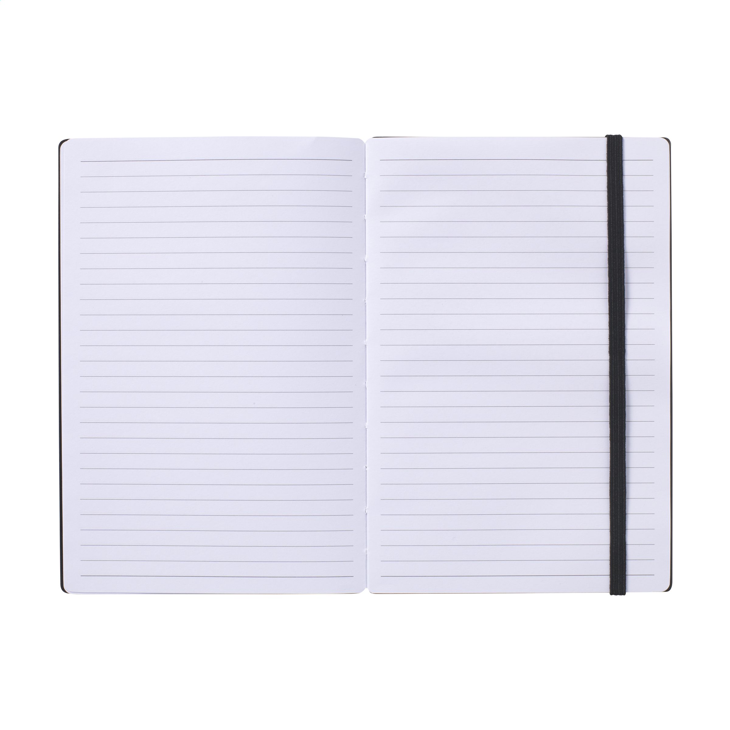 Notizbuch im A5-Format mit stabilem, schwarz lackiertem Hardcover aus FSC 100% zertifiziertem Bambus. Mit "Naked Spine"-Bindung. Diese wurde speziell entwickelt, um das Notizbuch vollständig öffnen und so flach wie möglich hinlegen zu können. So lassen sich Notizen und Skizzen leichter anfertigen. Mit praktischem Verschlussgummi und ca. 96 Blatt/192 Seiten weißem, liniertem, FSC Mix zertifiziertem Papier.