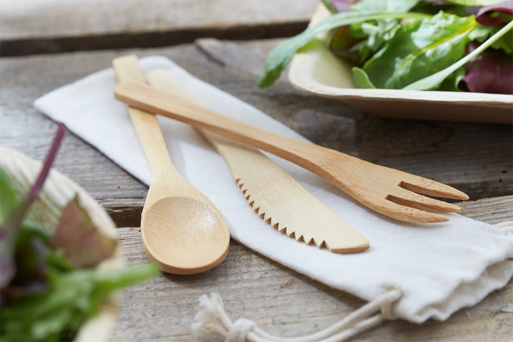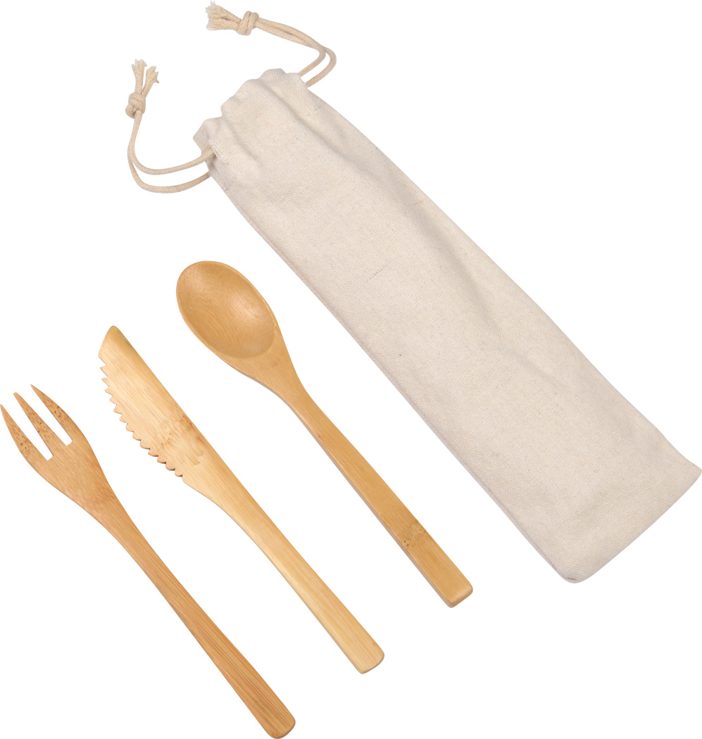 Bambus Besteckset NATURAL TRIP, im Baumwoll-Säckchen: inkl. Gabel, Messer und Löffel