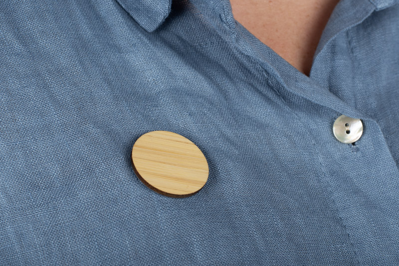 Die Bambusnadel ROUND ist ein elegantes Detail aus Bambus. Durch ihre runde und schlanke Form eignet sie sich perfekt als dezentes Dekorationselement. Dank des magnetischen Verschlusses ist die Anstecknadel einfach zu handhaben und stört die Stoffstruktur nicht. Das Produkt ist ideal als Corporate-Identity-Element, Logoträger oder dekorativer Akzent in Werbematerialien.