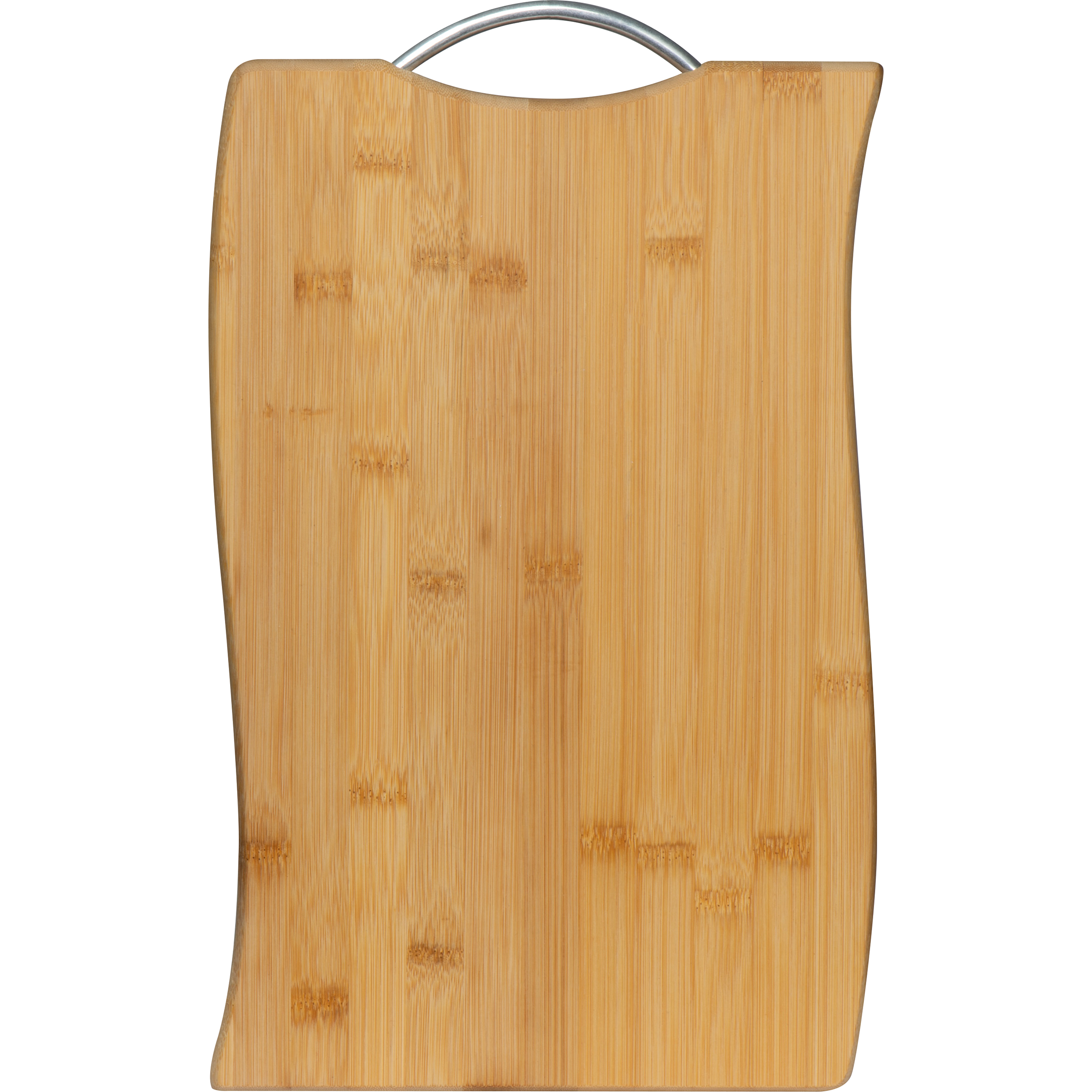 Schneidebrett aus Bambus mit integriertem Metall Tragehenkel. Ihre Werbung bringen wir mittels einer Lasergravur auf dem Brett an.