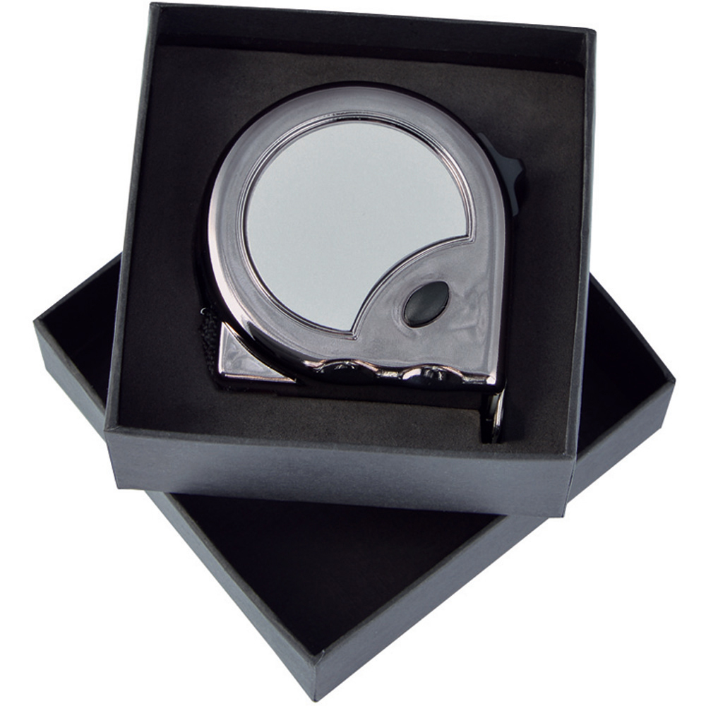 5 Meter Bandmaß mit magnetischem Bandanfangshaken und Bandrücklaufbremse. Die Rücklaufbremse sowie der Gürtelclip am Gehäuse erleichtern den Gebrauch. Mit den beiden starken Magneten am Bandanfangshaken kann das Band an metallischen Oberflächen zum Messen fixiert werden. Gehäuse: schlagfestes ABS Gehäuse mit UV Beschichtung. Band: 5 m/19 mm, lackiert. Knickfestigkeit: 1,60 m. Skalierung: cm / inch, einseitig. Genauigkeitsklasse: EG-Klasse II. Ausstattung: Bandrücklaufbremse, beweglicher Bandanfangshaken mit Magneten, Textilhandschlaufe, Gürtelclip. Verpackung: schwarze Geschenkverpackung.
