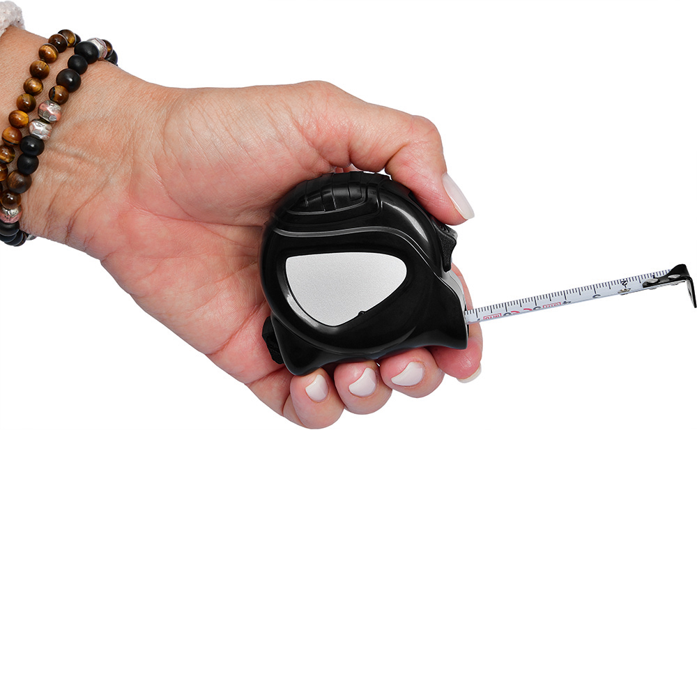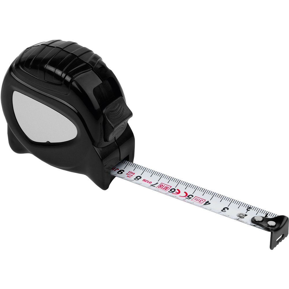 3 Meter Bandmaß mit Bandfeststellmechanismus. Der bewegliche Bandanfangshaken ermöglicht exaktes Messen auf Stoß und Zug. Gehäuse: schlagfestes ABS Gehäuse glänzend. Band: 3 m/16 mm, glänzend lackiert. Knickfestigkeit: 1,30 m. Skalierung: cm, einseitig. Genauigkeitsklasse: EG-Klasse II. Ausstattung: dynamischer Bandrücklauf, beweglicher Bandanfangshaken, Textilhandschlaufe, Gürtelclip. Verpackung: schwarze Geschenkverpackung.
