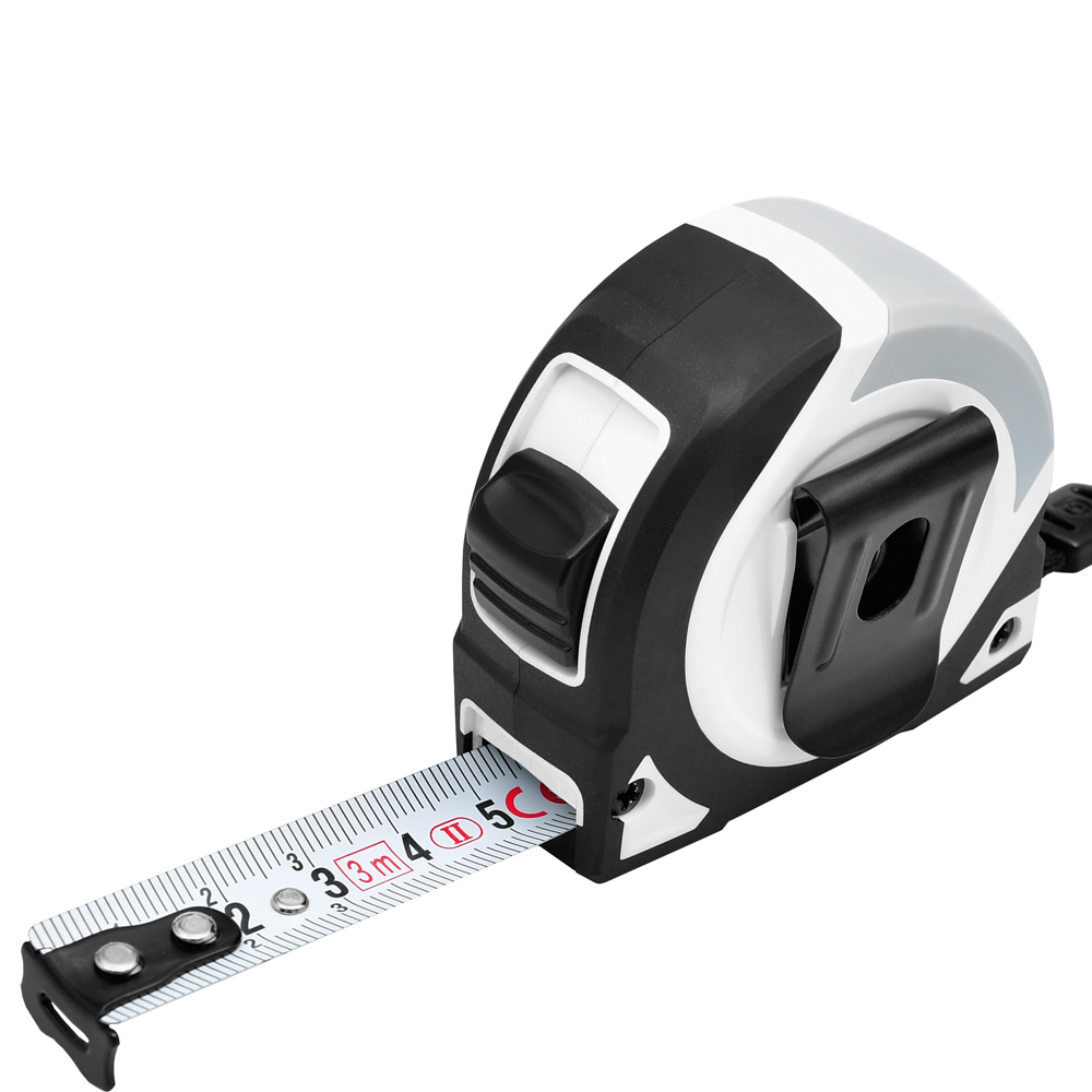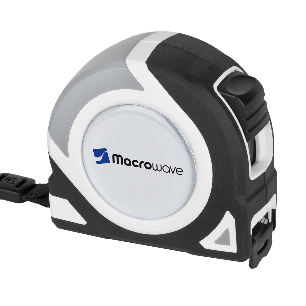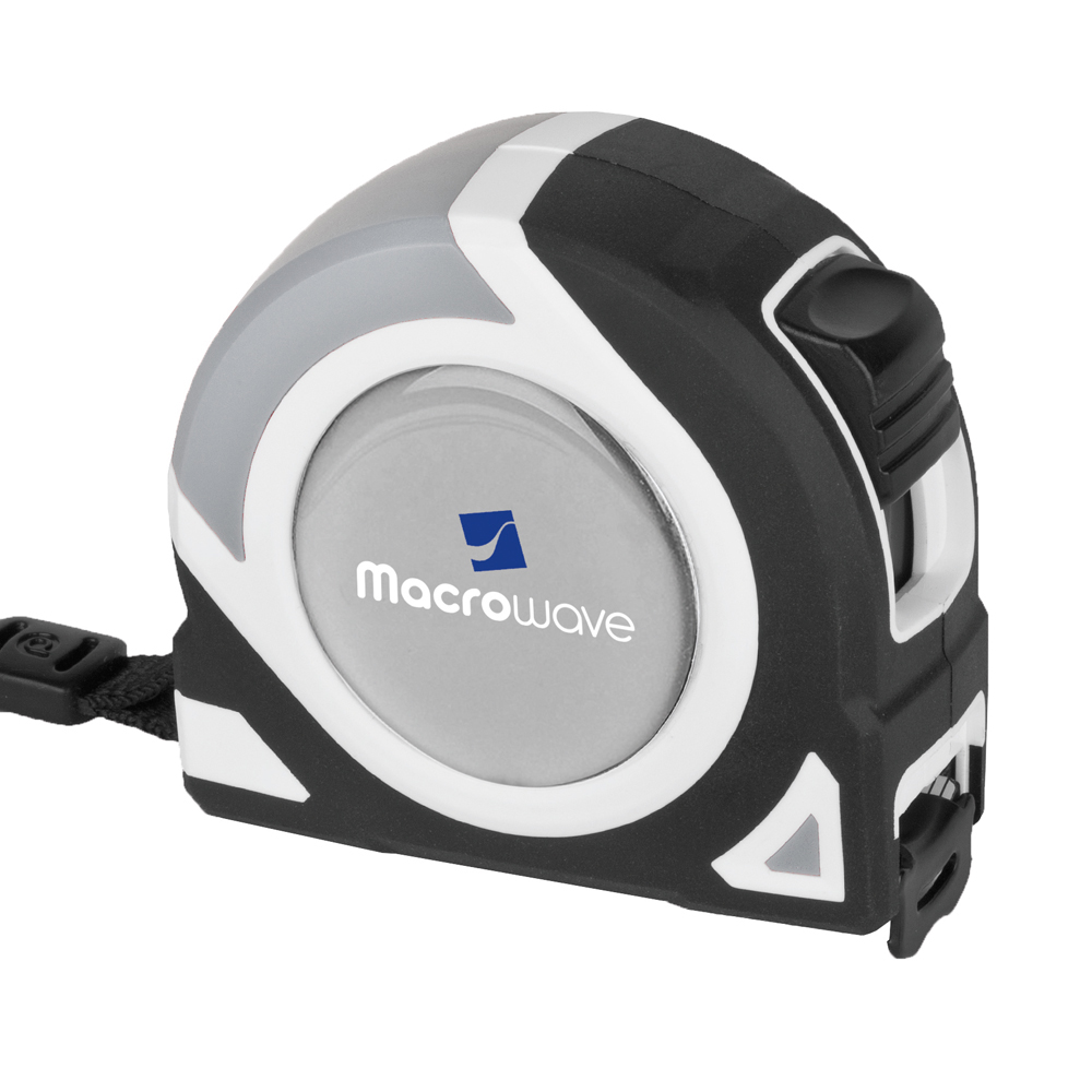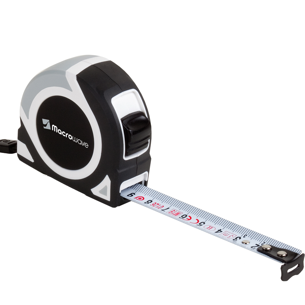 3 Meter Bandmaß mit Bandfeststellmechanismus. Gehäuse: schlagfestes 2-Komponenten-Gehäuse aus ABS und TPR. Band: 3 m/16 mm, lackiert. Knickfestigkeit: 1,50 m. Skalierung: cm, einseitig. Genauigkeitsklasse: EG-Klasse II. Ausstattung: dynamischer Bandrücklauf, beweglicher Bandanfangshaken, Gürtelclip, Textilhandschlaufe. Verpackung: schwarze Geschenkverpackung.