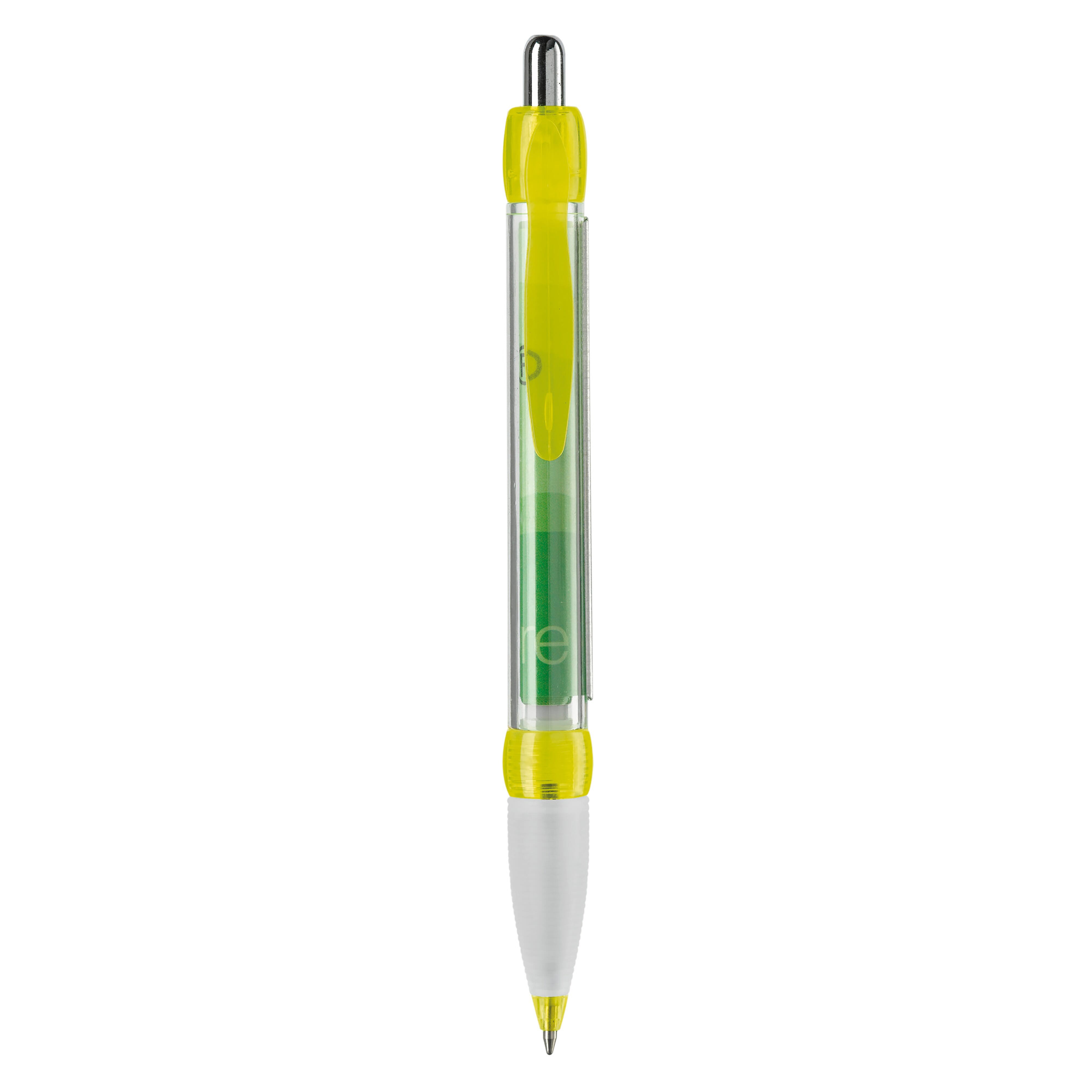 Transparenter Kugelschreiber mit Gummimanschette und integriertem Werbebanner, beidseitig in Full-colour. Ein optimaler und kompletter Werbeträger! Ausgestattet mit blauer X20-Mine. Werbeanbringung zusätzlich auf dem Schaft oder dem Clip möglich. Lieferzeit ca. 6 Wochen.