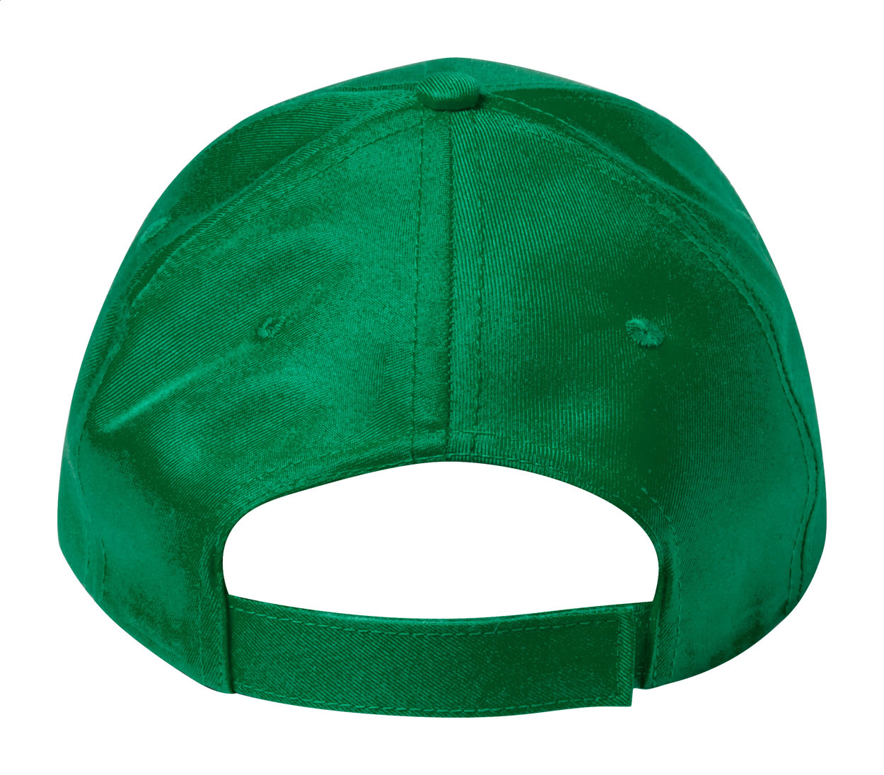 6-Panel Baseball-Cap mit Klettverschluss, Material: Polyester und Mikrofaser.