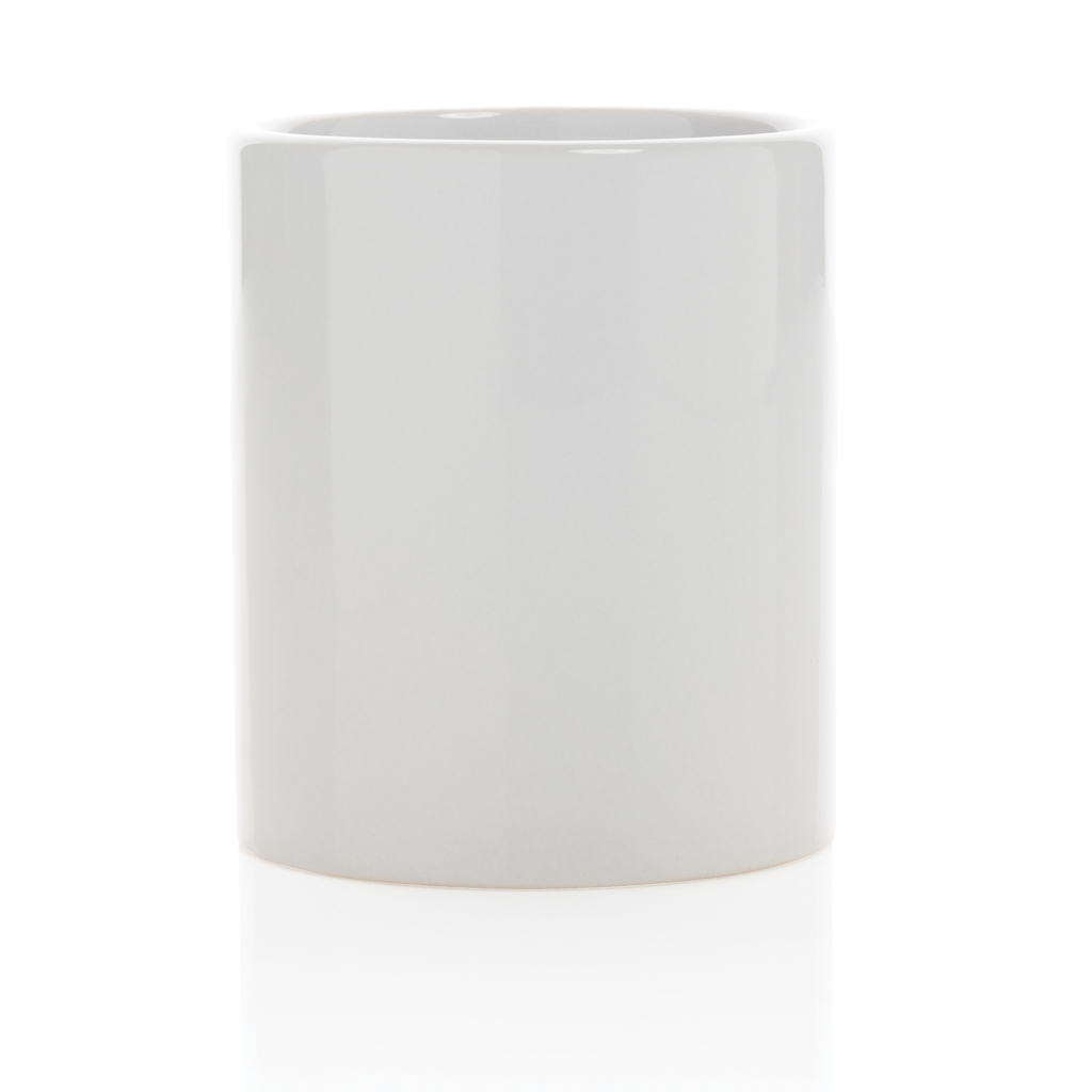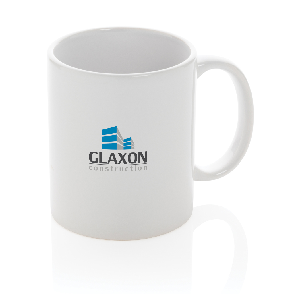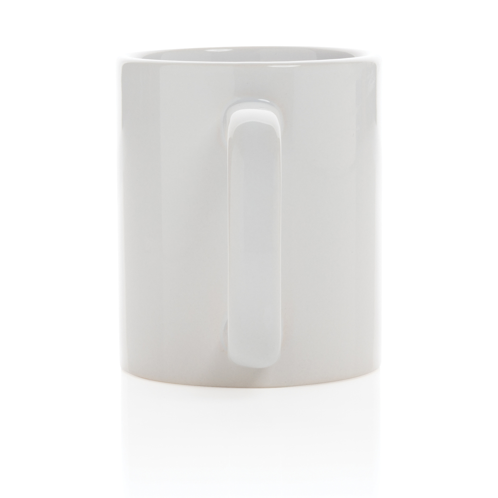 Genießen Sie Ihren Kaffee zu Hause oder im Büro mit diesem Keramikbecher im klassischen Design. Der Becher ist spülmaschinenfest gemäß EN12875-1 (mindestens 125 Waschzyklen) für alle Dekorationsmethoden. Verpackt in einer Geschenkbox. Kapazität 350ml.