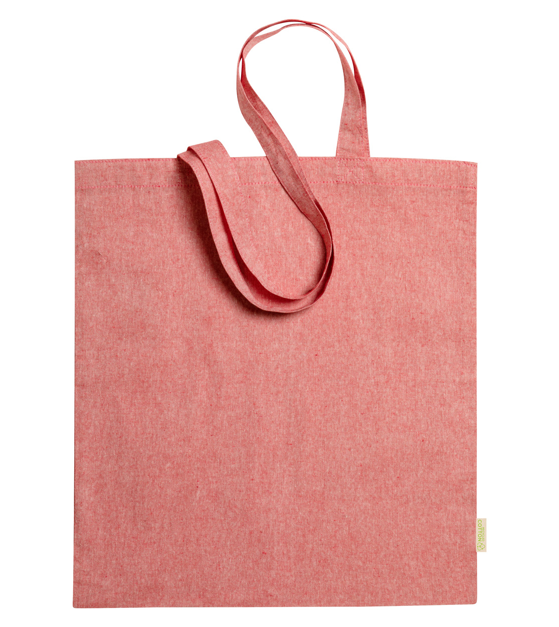 Wiederverwendbare Einkaufstasche aus 100% recycelter Baumwolle (120g / m²) mit langen Henkeln.