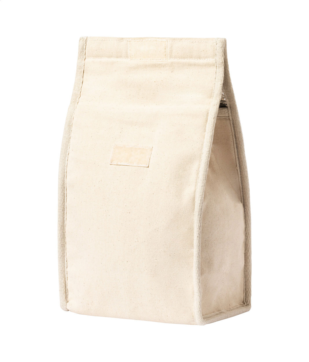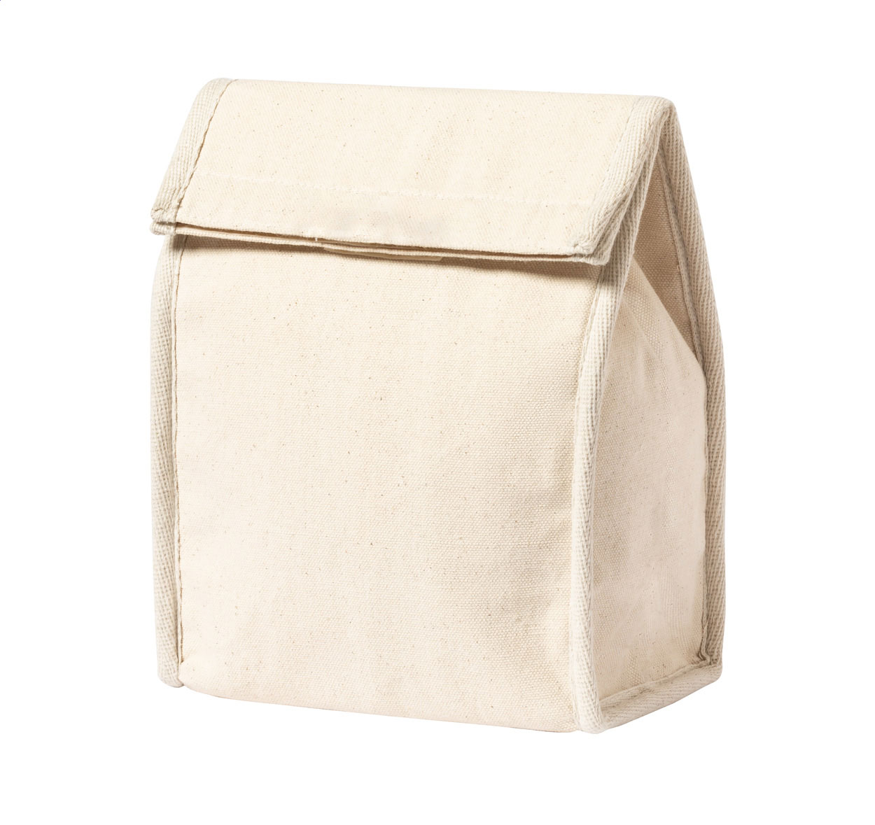 Kühltasche aus Baumwolle mit gepolstertem Aluminiumfach und Klettverschluss. 100% Baumwolle, 330 g / m².
