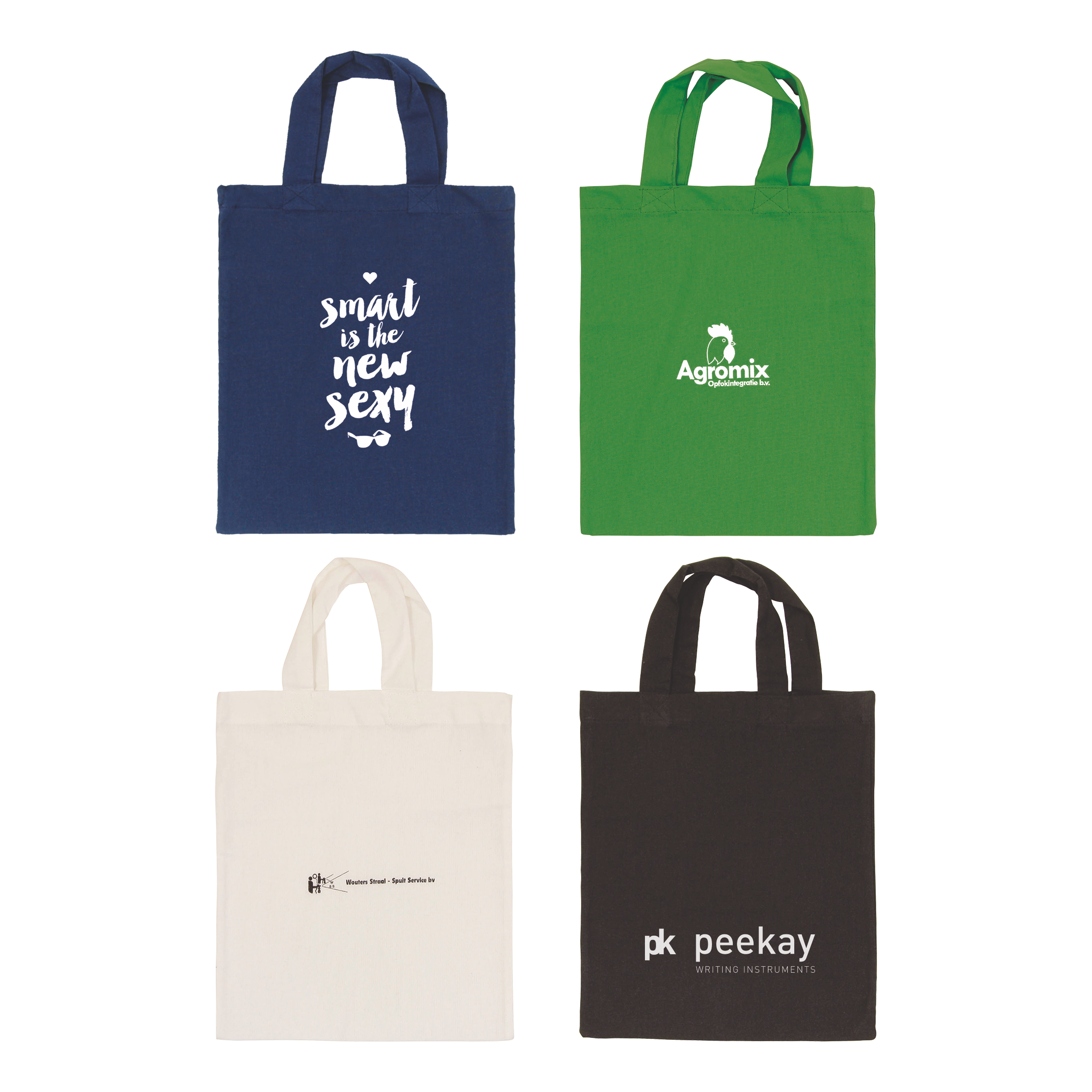 Baumwoll Tragetasche klein farbig, 230 x 250 mm, Henkeln 25 x 140 mm, 100% Baumwolle, 135 gr / m2.