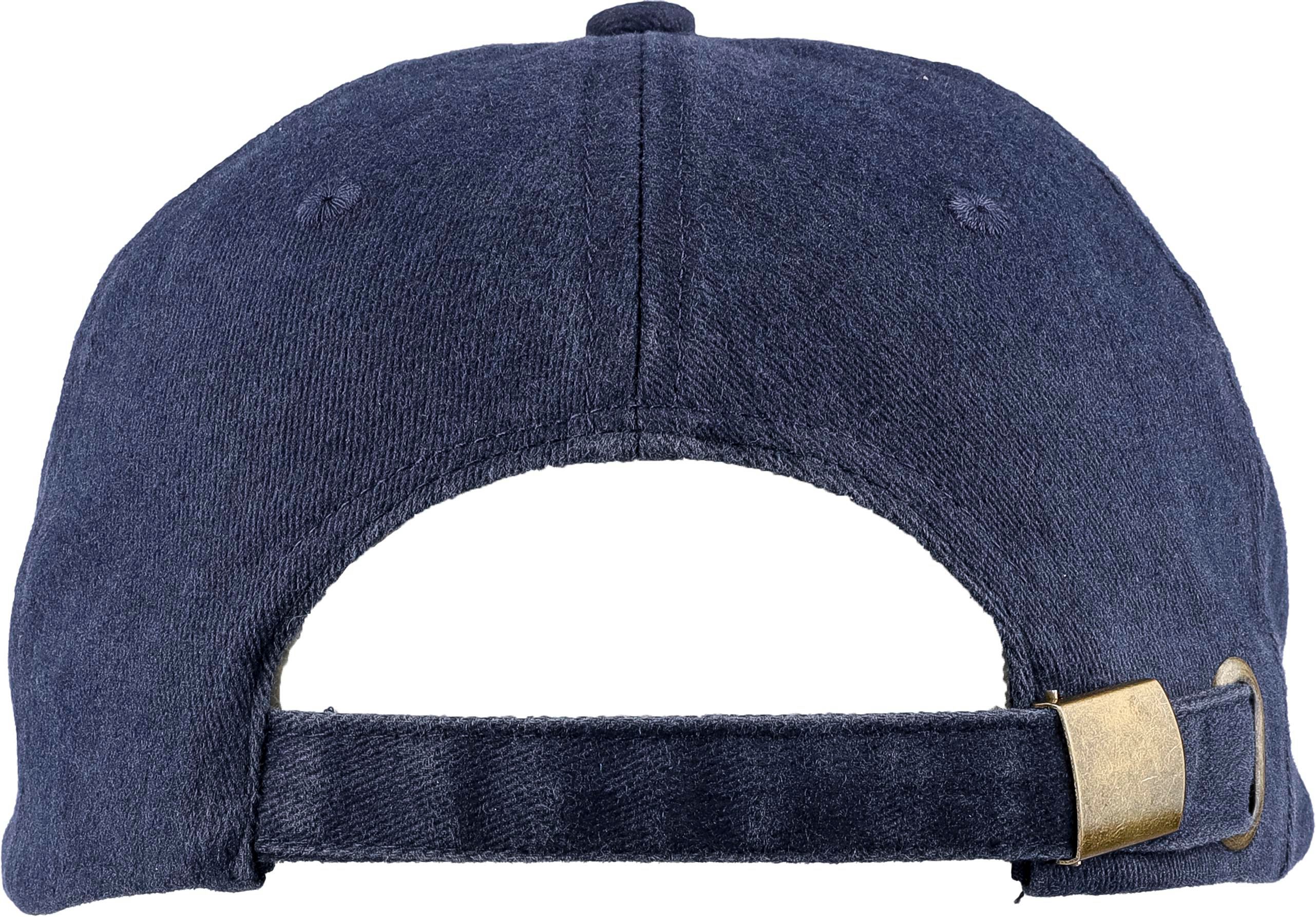 Einteilige Mütze aus gewaschener Baumwolle (240 g / m2) mit 5-Panel-Design und 7 cm breitem Schirm. Verstellbarer Verschluss mit Messingschnalle. Innen nicht gefüttert.