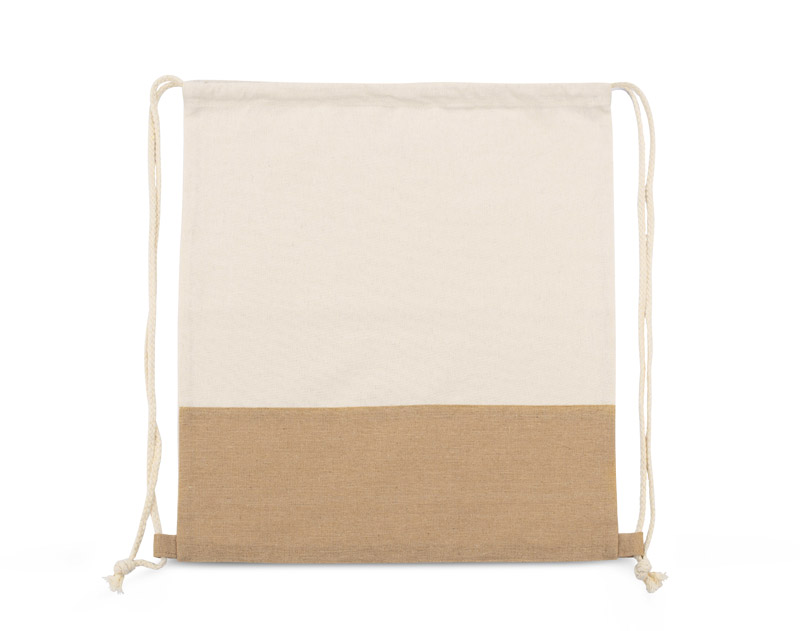 Die Tasche JUTIK besteht aus Baumwolle (160 g / m2) kombiniert mit einem juteähnlichen Material. Das Ganze sieht sehr natürlich und interessant aus. Die Tasche ist einkammerig und mit Baumwollschnüren befestigt.