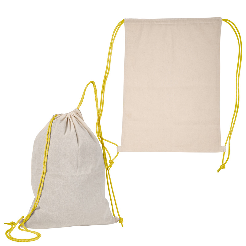 Oeko-Tex® STANDARD 100 zertifizierter Sportbeutel aus Baumwolle (Grammatur 140 g / m²) mit extra dicken Kordelzügen. Ihre Werbung drucken wir auf eine Seite der Tasche.
