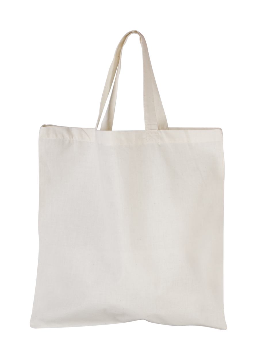 Recycling-Baumwolltasche mit kurzen Henkeln (350 mm). 100% Baumwolle, 95 g / m².