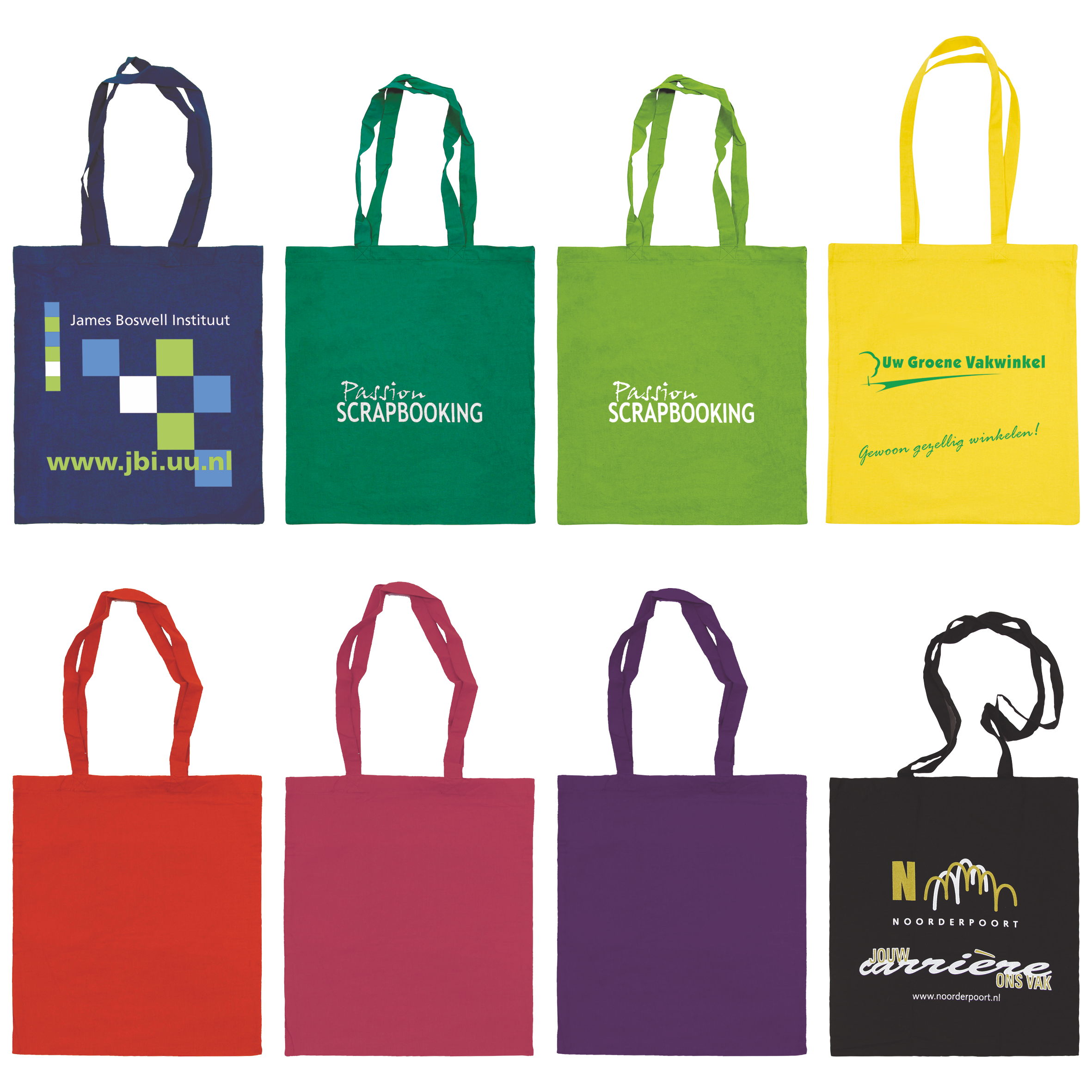 Baumwolltasche farbig, 390 x 410 mm mit langen Henkeln 25 x 350 mm, 100% Baumwolle, 140 gr / m2.