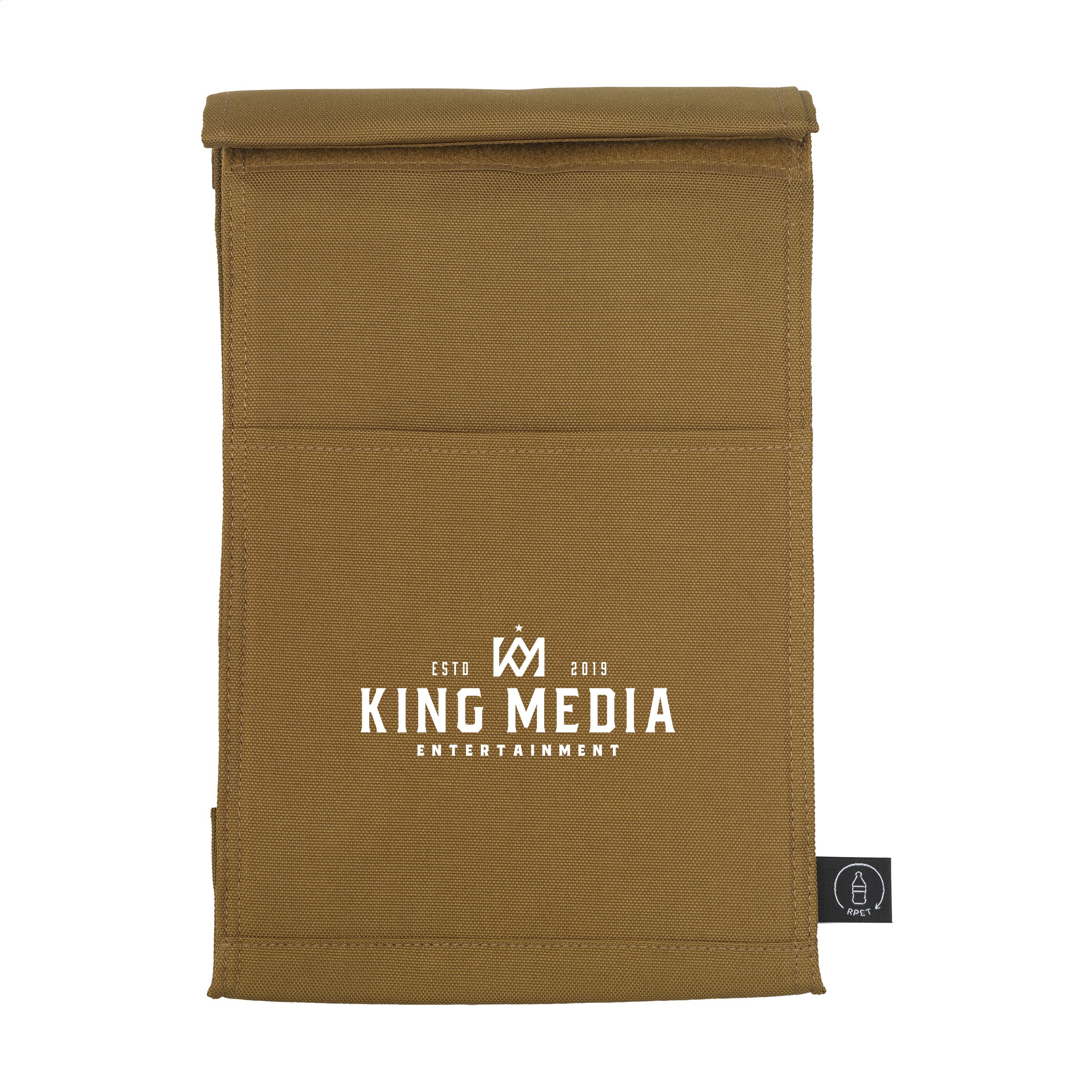 WoW! Ideale Roll-Top-Lunchbag aus 600D RPET-Polyester. Mit praktischem Fach auf der Vorderseite, einem Rollverschluss mit Klettband und einer Trageschlaufe. Diese geräumige Lunchbag ist gleichzeitig eine Kühltasche. Die isolierende Innenseite ist mit Alminiumfolie ausgekleidet. Die Tasche hat die ideale Größe für ein köstliches Mittagessen. So bleibt Ihr Lunch gekühlt und damit länger frisch. Diese Tasche ist ein großartiger Ersatz für die täglichen Butterbrottüten aus Plastik. Damit ist dieses Produkt die perfekte Alternative zu Einwegplastik. GRS-zertifiziert. Recyceltes Material insgesamt: 65%. Fassungsvermögen ca. 5 Liter.