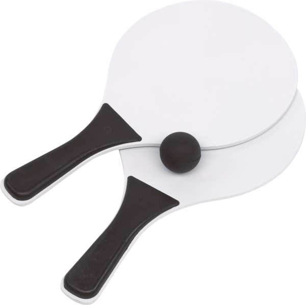 Beachball-Set SUMMER FEELING, 3-teilig: bestehend aus 2 Holzschlägern mit farbigen Griffen und 1 Softball, im Netzbeutel