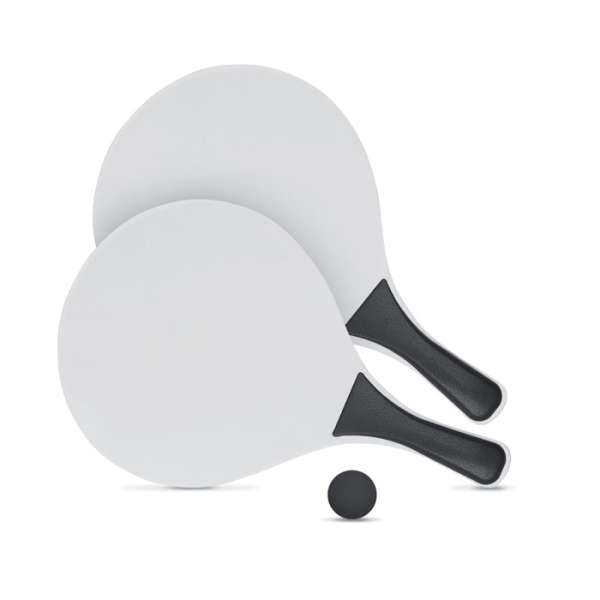 Beachball-Spiel. Bestehend aus zwei Schlägern aus MDF und einem Softball.