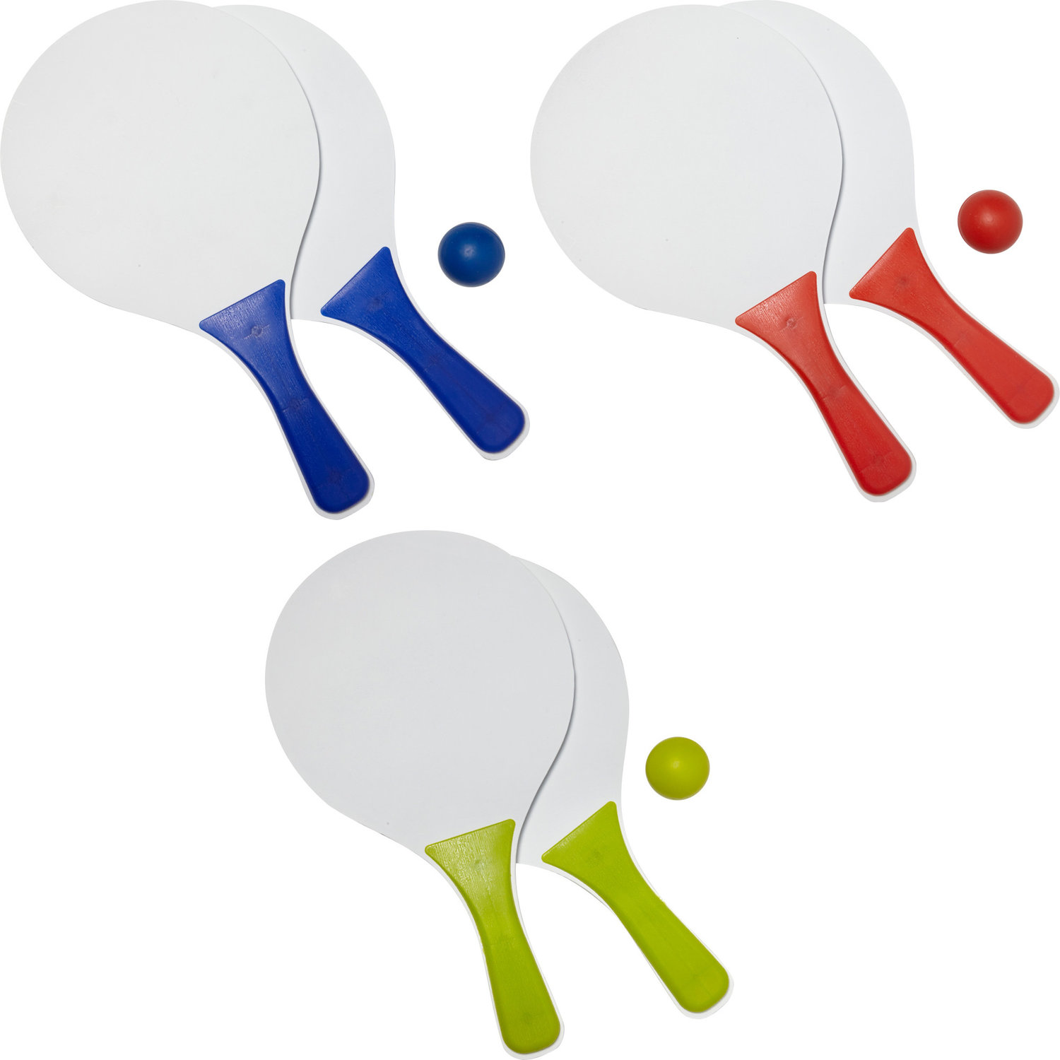 Beachball-Tennisspiel aus Holz, mit Kunststoffgriffen und Spielball.