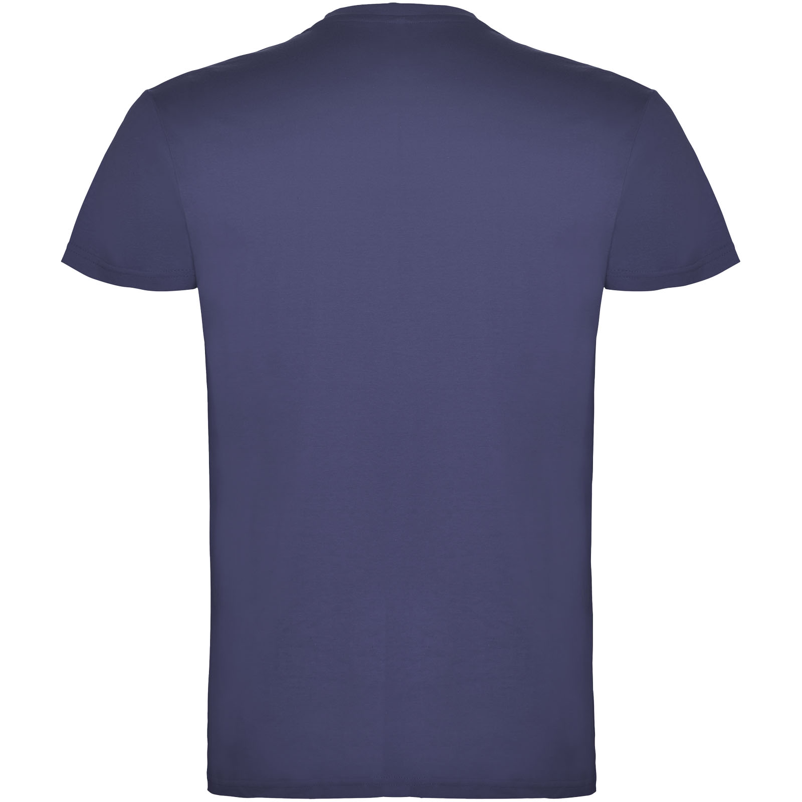 Kurzärmeliges T-Shirt mit doppellagigem Rundhalsausschnitt aus Elasthan, hergestellt aus schlauchförmigem Material für Erwachsene. Verstärkte und verdeckte Nähte am Kragen. Herausnehmbares Etikett. Das Modell ist 190 cm groß und trägt Größe L.