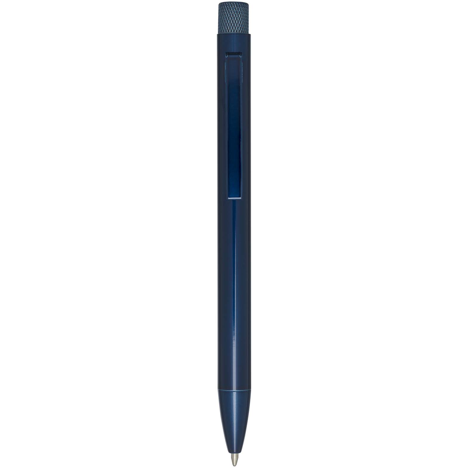 Kugelschreiber mit farbiger Sprühbeschichtung. Der Knopf und die Spitze sind aus Messing, der Schaft aus recyceltem Messing und der Clip aus Eisen. Tintenfarbe: Blau. Schreiblänge: 1000 Meter. Strichstärke: 1,0 mm. Geliefert in einer Geschenkbox.