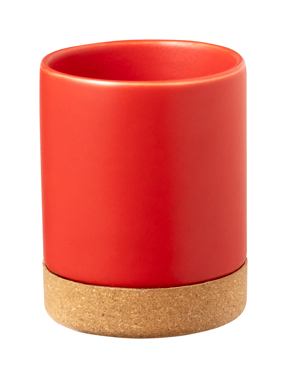 Keramiktasse mit Naturkorkboden, einzeln in Kraftpapierbox. Füllmenge: 350 ml.