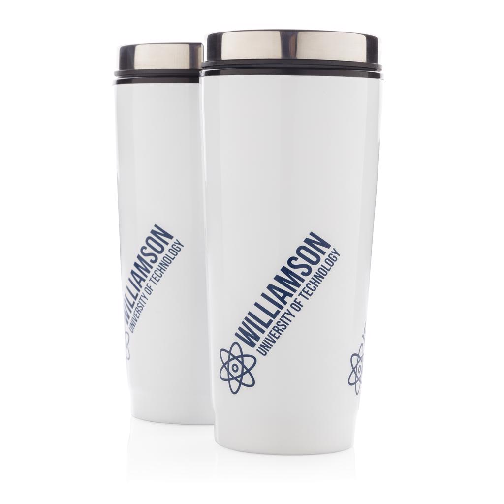 350ml Becher aus Edelstahl, innen Kunststoff, mit Push-Knopf zum dichten Verschließen des Bechers, geeignet zur einhändigen Bedienung. Nur Handwäsche. Geschütztes Design®