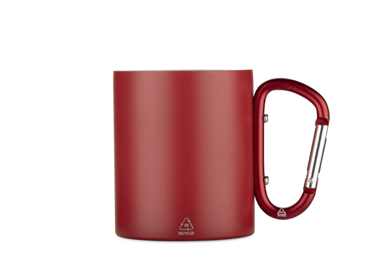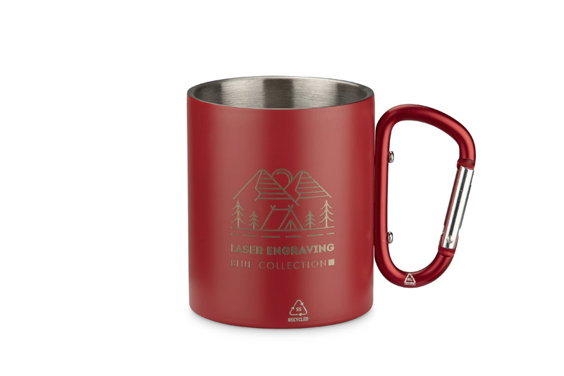 Der VIVO-Becher mit einem Fassungsvermögen von 250 ml besteht aus recyceltem Edelstahl und sein Griff in Form eines Karabiners ist aus recyceltem Aluminium. Die matte Oberfläche verleiht ihm ein modernes Aussehen und mit dem Karabinerhaken lässt sich der Becher leicht an einem Rucksack oder einer Tasche befestigen. Er ist praktisch auf Reisen, beim Camping oder beim Wandern, ein attraktives Werbegeschenk und eine ausgezeichnete Wahl für alle, die Wert auf bewusste Lösungen legen.