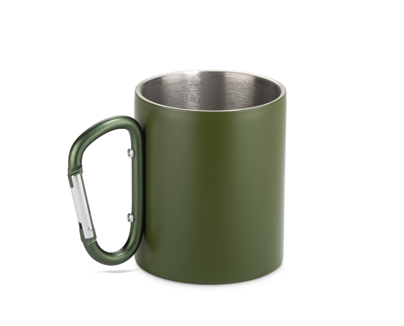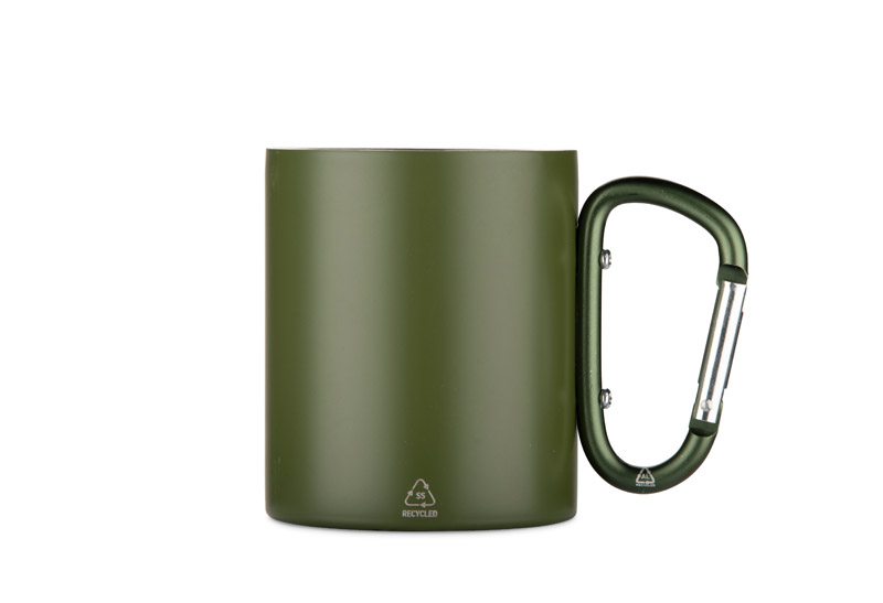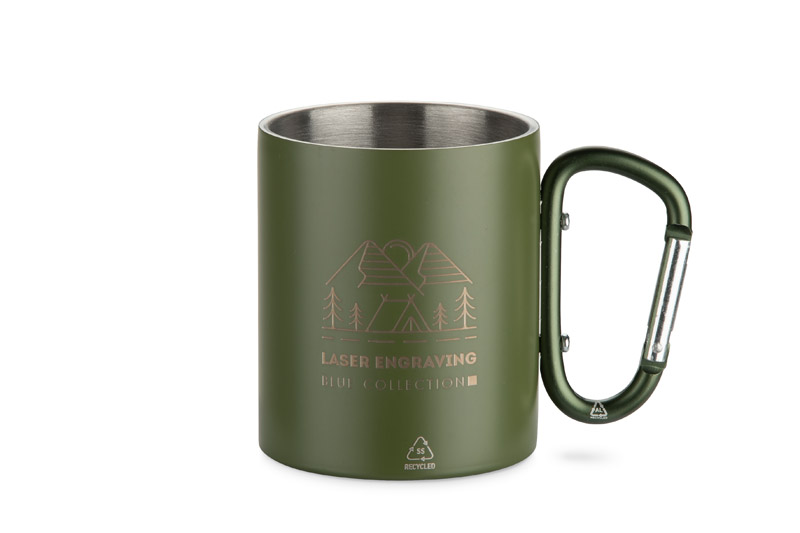 Der VIVO-Becher mit einem Fassungsvermögen von 250 ml besteht aus recyceltem Edelstahl und sein Griff in Form eines Karabiners ist aus recyceltem Aluminium. Die matte Oberfläche verleiht ihm ein modernes Aussehen und mit dem Karabinerhaken lässt sich der Becher leicht an einem Rucksack oder einer Tasche befestigen. Er ist praktisch auf Reisen, beim Camping oder beim Wandern, ein attraktives Werbegeschenk und eine ausgezeichnete Wahl für alle, die Wert auf bewusste Lösungen legen.