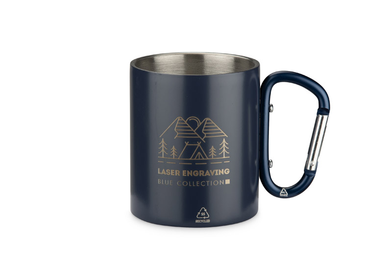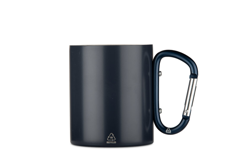 Der VIVO-Becher mit einem Fassungsvermögen von 250 ml besteht aus recyceltem Edelstahl und sein Griff in Form eines Karabiners ist aus recyceltem Aluminium. Die matte Oberfläche verleiht ihm ein modernes Aussehen und mit dem Karabinerhaken lässt sich der Becher leicht an einem Rucksack oder einer Tasche befestigen. Er ist praktisch auf Reisen, beim Camping oder beim Wandern, ein attraktives Werbegeschenk und eine ausgezeichnete Wahl für alle, die Wert auf bewusste Lösungen legen.