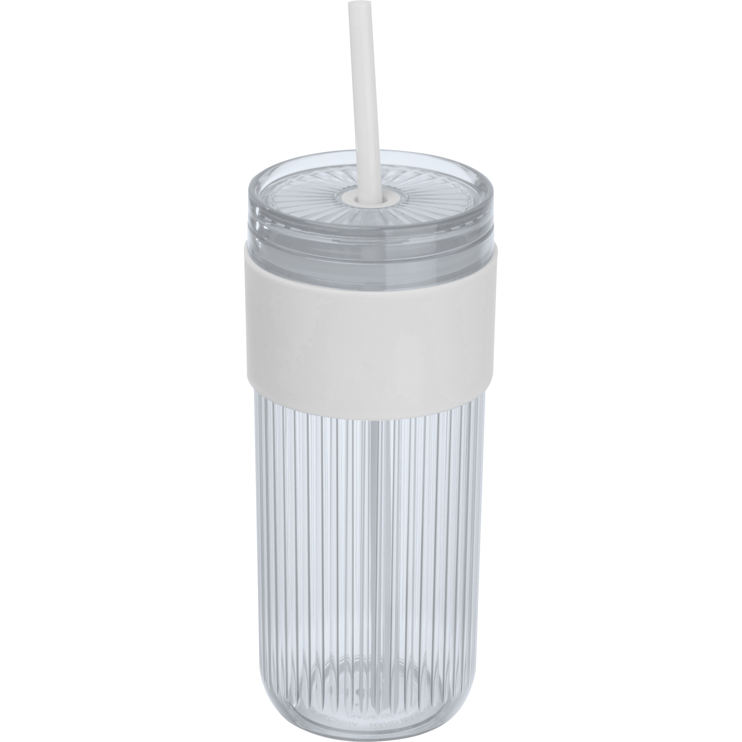 Trinkbecher aus Kunststoff mit Trinkhalm, Silikon Griffzone und 660ml Fassungsvermögen. Ihre Werbung drucken wir auf den Becher.