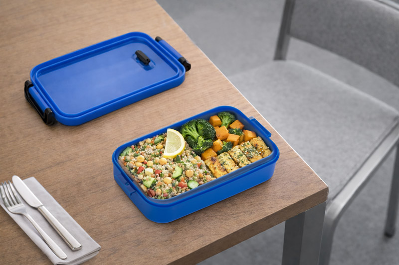 Der TAPAS Lunchbehälter fasst 850 ml und schließt mit zwei seitlichen Clips, um einen dichten Verschluss und Stabilität beim Tragen zu gewährleisten. Der Deckel hat ein integriertes Silikonventil zum sicheren Druckausgleich, z. B. nach dem Aufwärmen der Mahlzeit. Praktisch und bequem - ideal für Arbeit, Schule oder zum Mitnehmen.