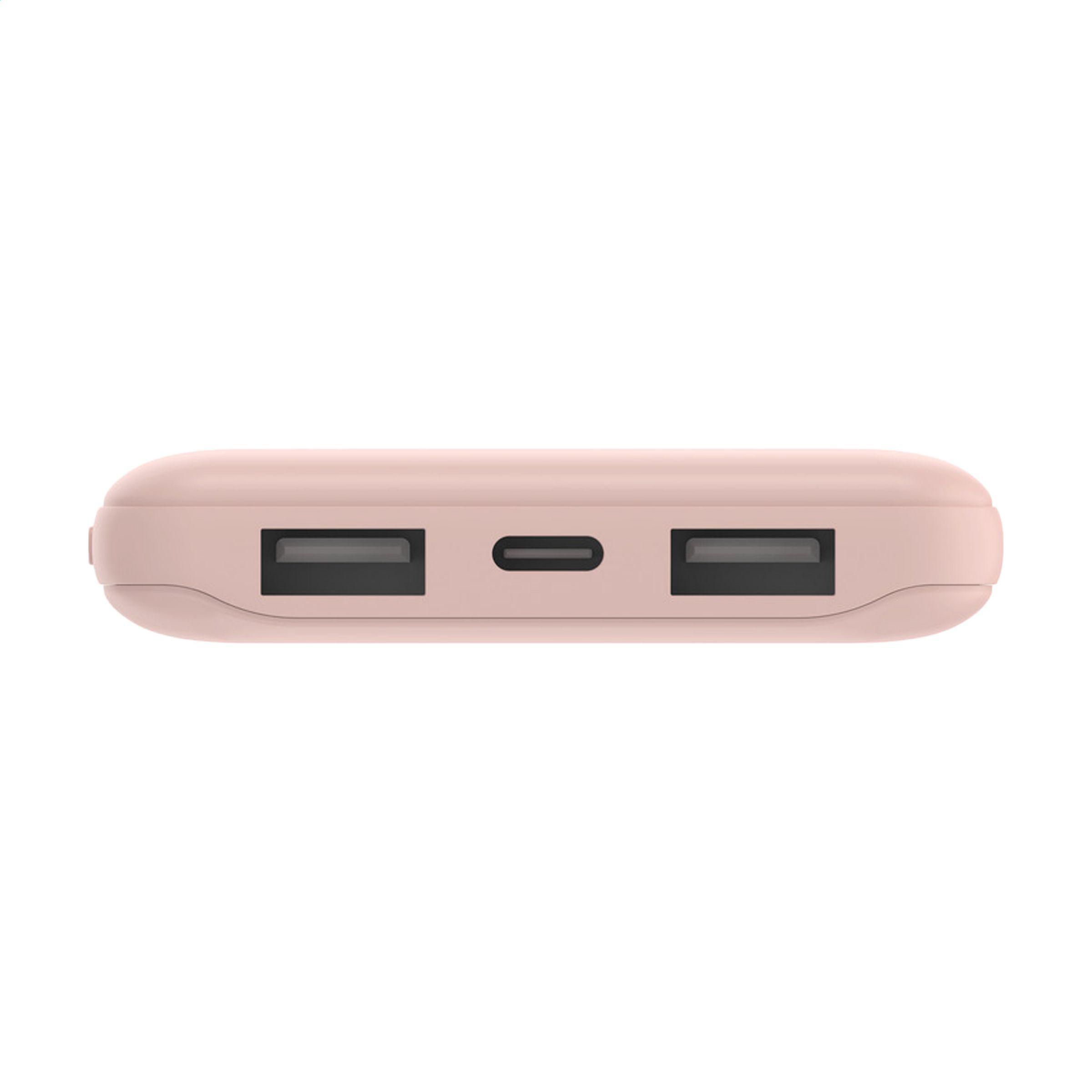 Powerbank 10.000 mAh der Marke Belkin. Ausgestattet mit einem Gehäuse aus recyceltem Kunststoff. Schnelles Aufladen von Smartphones und anderen Geräten mit bis zu 15W Leistung über zwei USB-A-Anschlüsse und einen USB-C-Anschluss. Diese Powerbank bietet eine zusätzliche Akkulaufzeit von bis zu 40 Stunden. Genug, um Filme zu schauen, FaceTime-Anrufe zu tätigen und Navigations-Apps zu nutzen. Mit LED-Kontrollleuchte. Die Powerbank erfüllt die Sicherheitsstandards von Fluggesellschaften, sodass Sie sie im Handgepäck mitnehmen können. Inklusive USB-A/USB-C-Kabel und Gebrauchsanweisung. 100% plastikfreie Verpackung. Hergestellt aus Kunststoff, der nach Gebrauch recycelt wurde.